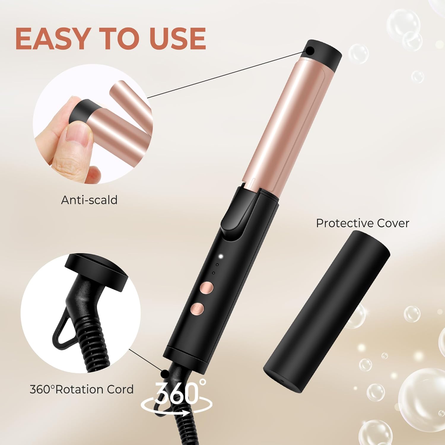- Zuverlässiges Haarstyling-Tool Automatische Abschaltung nach 60 Minuten, kompatibel mit 110 V 240 V Spannung, sodass Sie den Lockenstab weltweit verwenden können. Der Griff ist bequem, das Design ist ergonomisch. Enthält eine Aufbewahrungstasche und