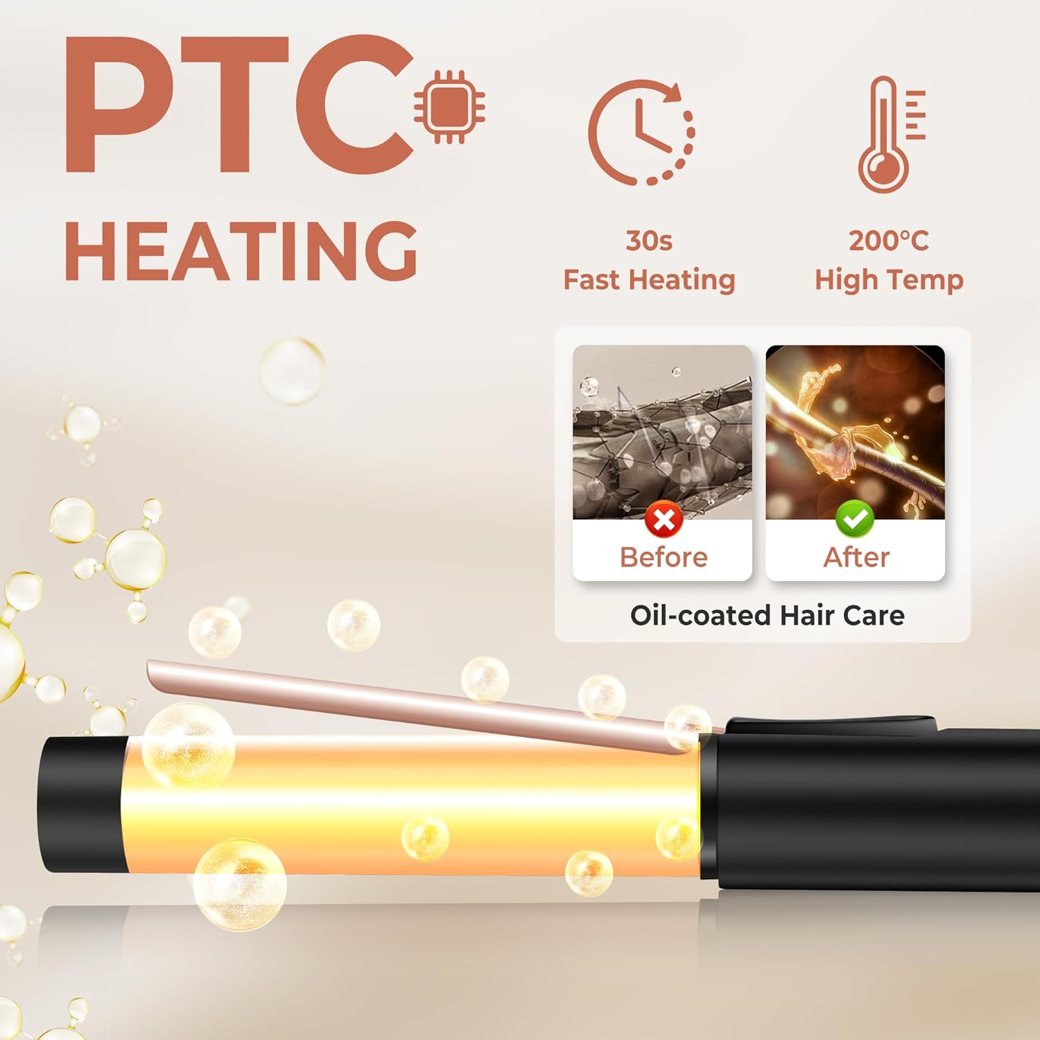 - Einfach zu verwendender Lockenstab Der Lockenstab mit PTC-Heiztechnologie, der professionelle Lockenstab heizt sich sofort und schnell in 30 Sekunden auf. Der LED-Bildschirm des Lockenstabs zeigt die einstellbare Temperatur zwischen 160 °C und 200 °C
