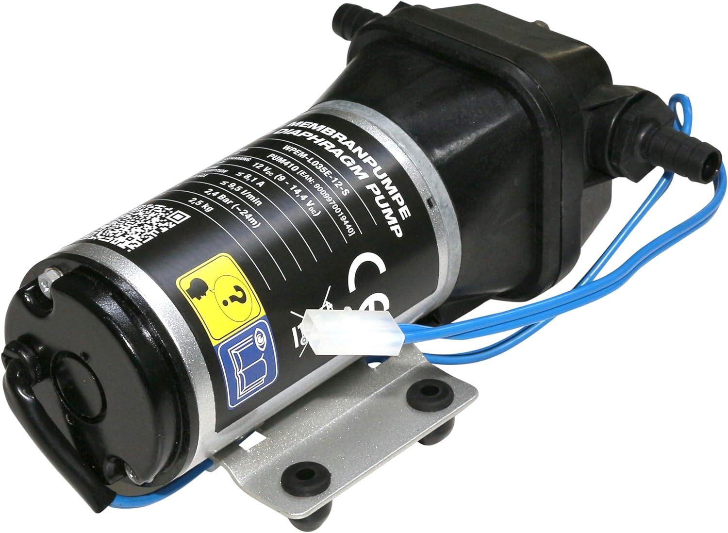 • Membranpumpe mit 12V Gleichstrommotor (9-14,4VDC), Stromaufnahme ohne Gegendruck ca. 4,3A / max. 8,1A