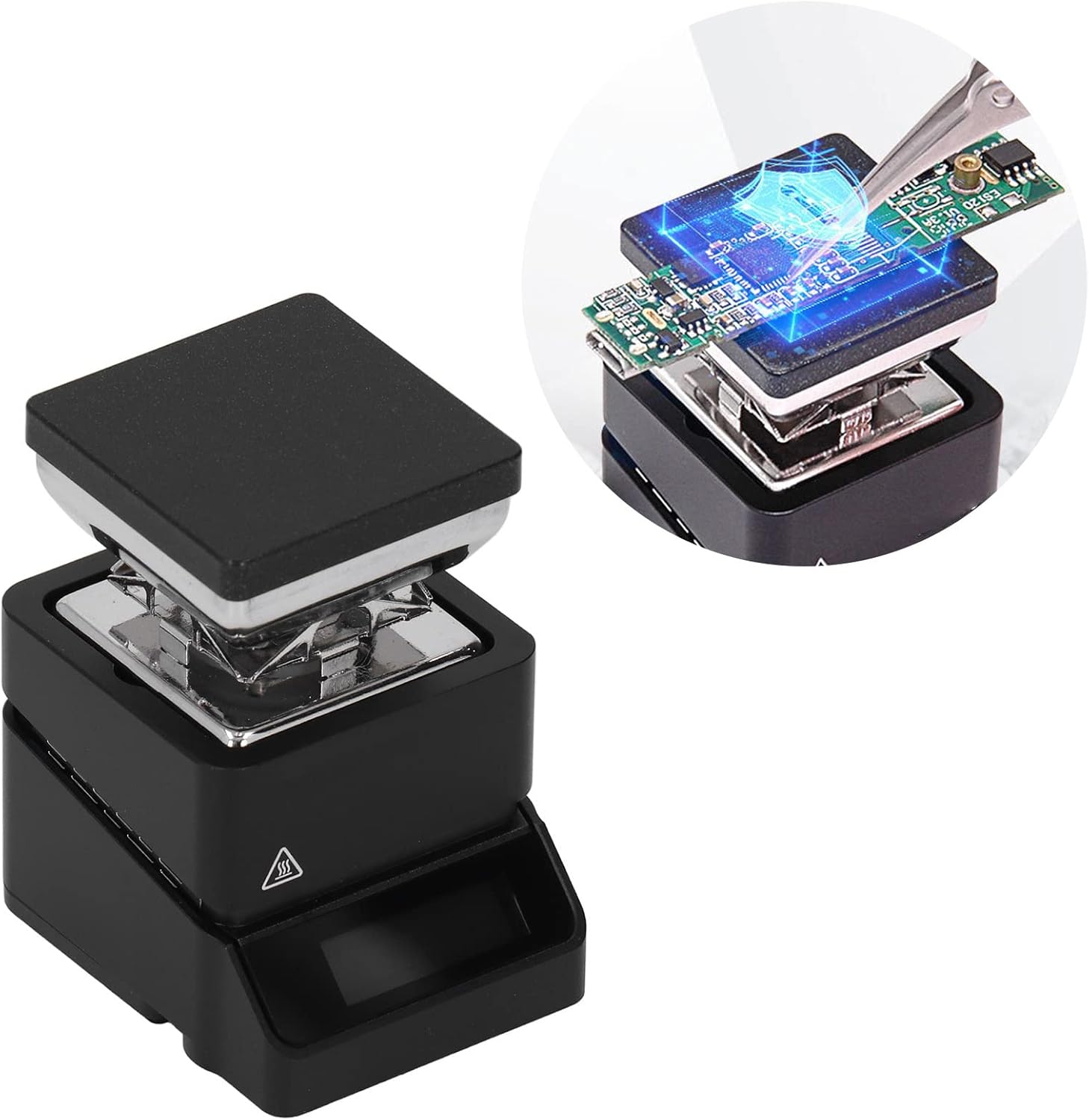 • KOMPAKTES DESIGN: Diese Heizplatten-Vorwärmstation hat einen kleinen Rahmen und eine kompakte Standfläche, mit einer quadratischen Turmform und einer Heizfläche von 30 x 30 mm.