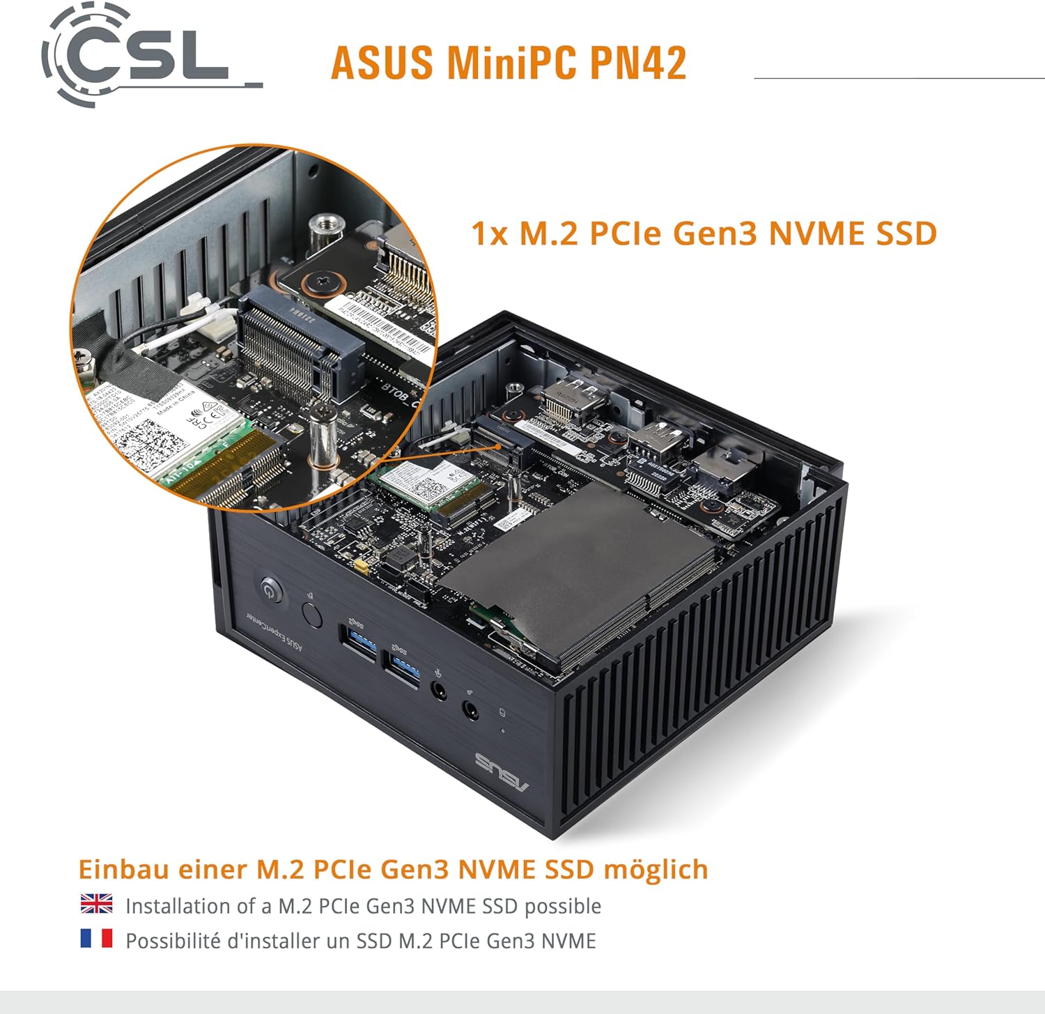 • Der ASUS PN42 ist ein leistungsstarker Mini-PC der Extraklasse in ultrakompaktem Format. Ausgestattet mit einem Intel N100 Prozessor, Intel UHD-Grafik und grosszügig dimensioniertem 32 GB Arbeitsspeicher meistert er mühelos anspruchsvolle Aufgaben im