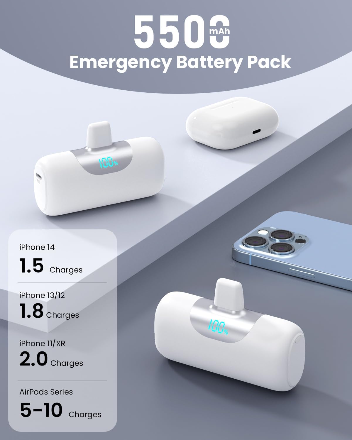 - 【Mini Powerbank für iPhone】Diese kleine Powerbank mit 1 ios-Anschluss ist weitgehend kompatibel mit der iPhone 14/13/12/11/X/XR/XS/8/7/6-Serie. Powerbank eingebauter iPhone-Stecker, entwickelt für iPhone-Benutzer, Einfach direkt eingesteckt kann