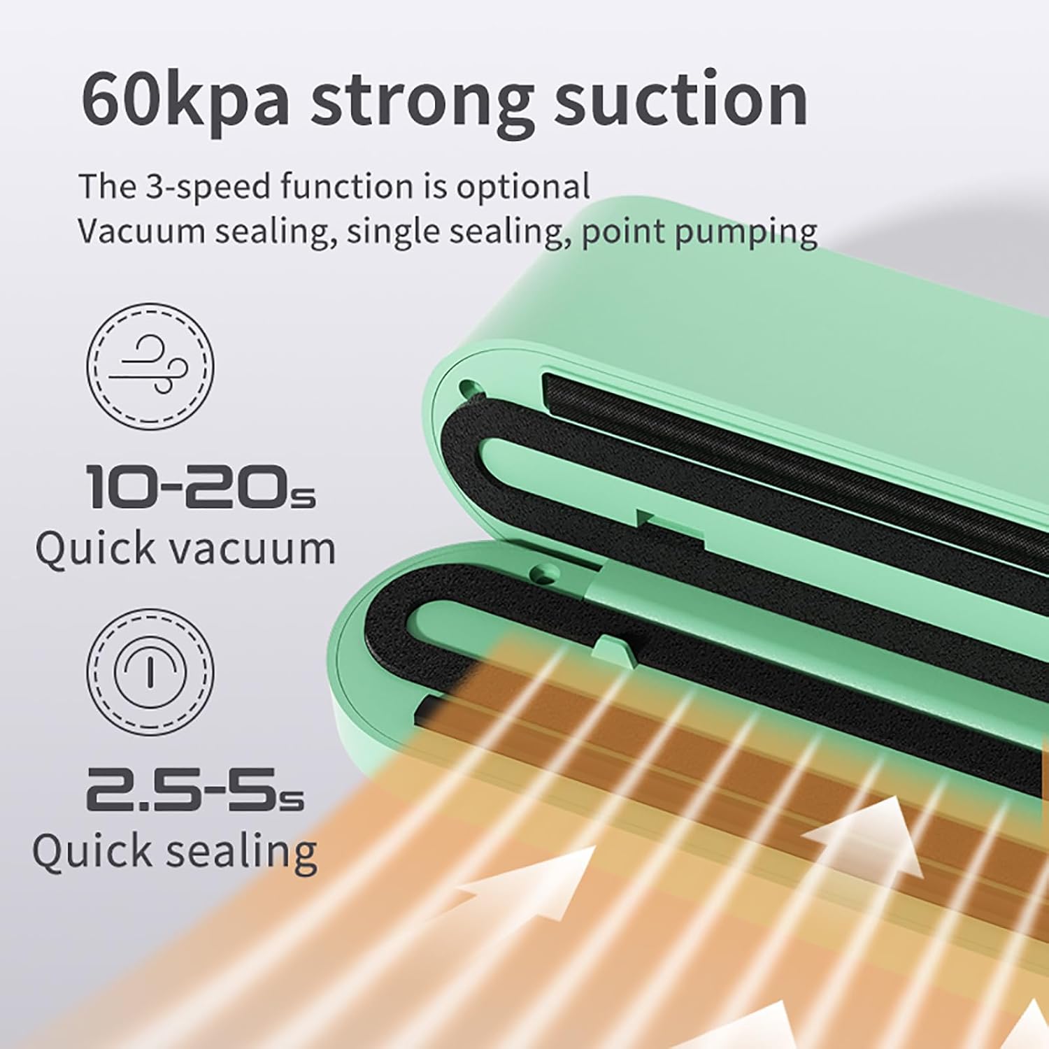 Mini Vakuumiergerät, Tragbar Vakuumierer für kontinuierliches Arbeiten mit hoher Geschwindigkeit, Folienschweissgerät für Lebensmittel, inkl. 4 Vakuumier-Beutel und 1 Inflator Adapte (Grün)