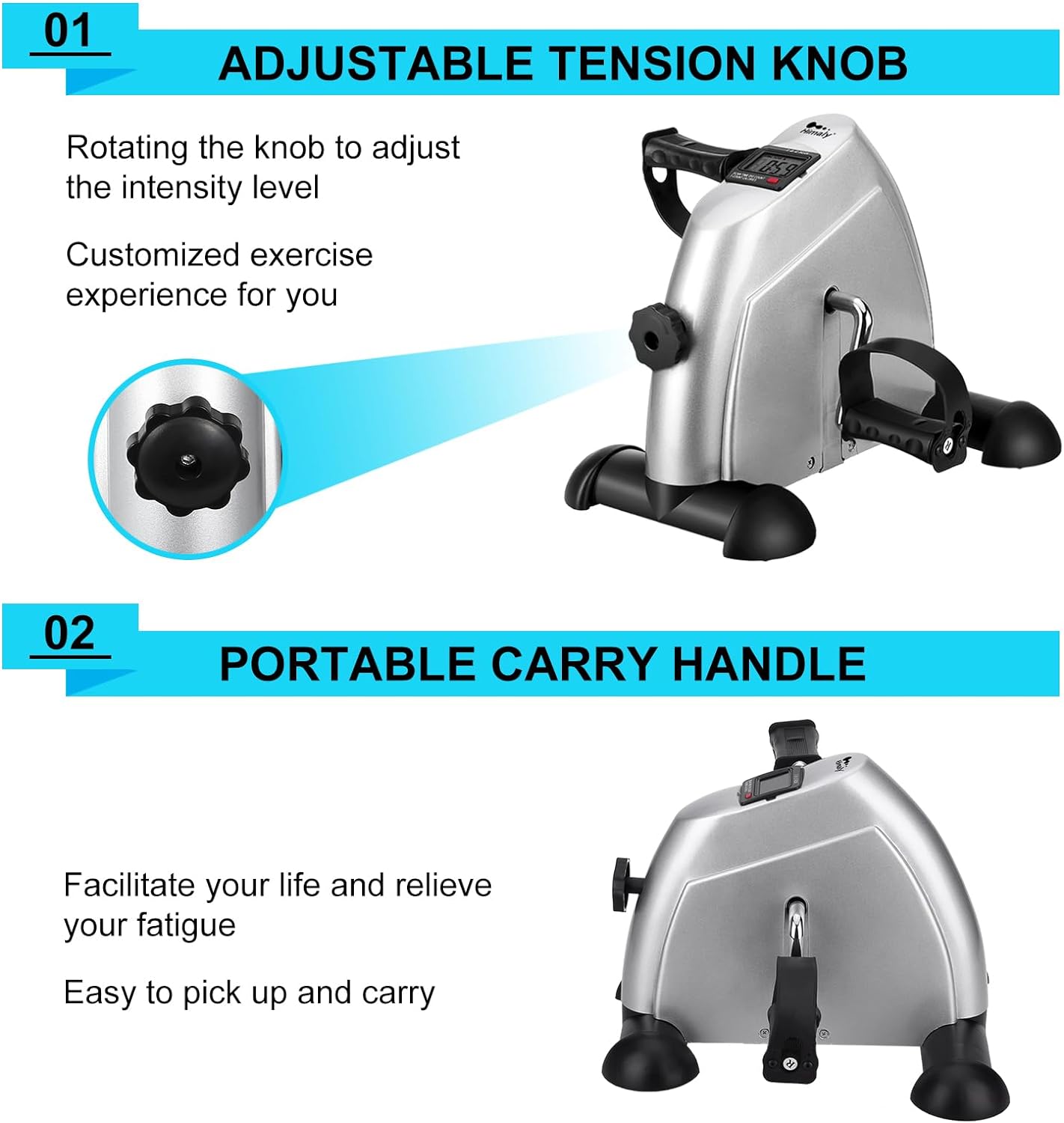 • Mini-Bike Heimtrainer: bietet Übungen für den Körper an. Er stimuliert den Blutkreislauf und verbessert Muskelkraft, diese Mini Fahrrad kann auf der unterschiedlicher Ebene einstellen, um Ihre Muskel-Gruppe, Ober-und Unterkörper Übungen mit bestem Effekt zu trainieren fit bleiben.