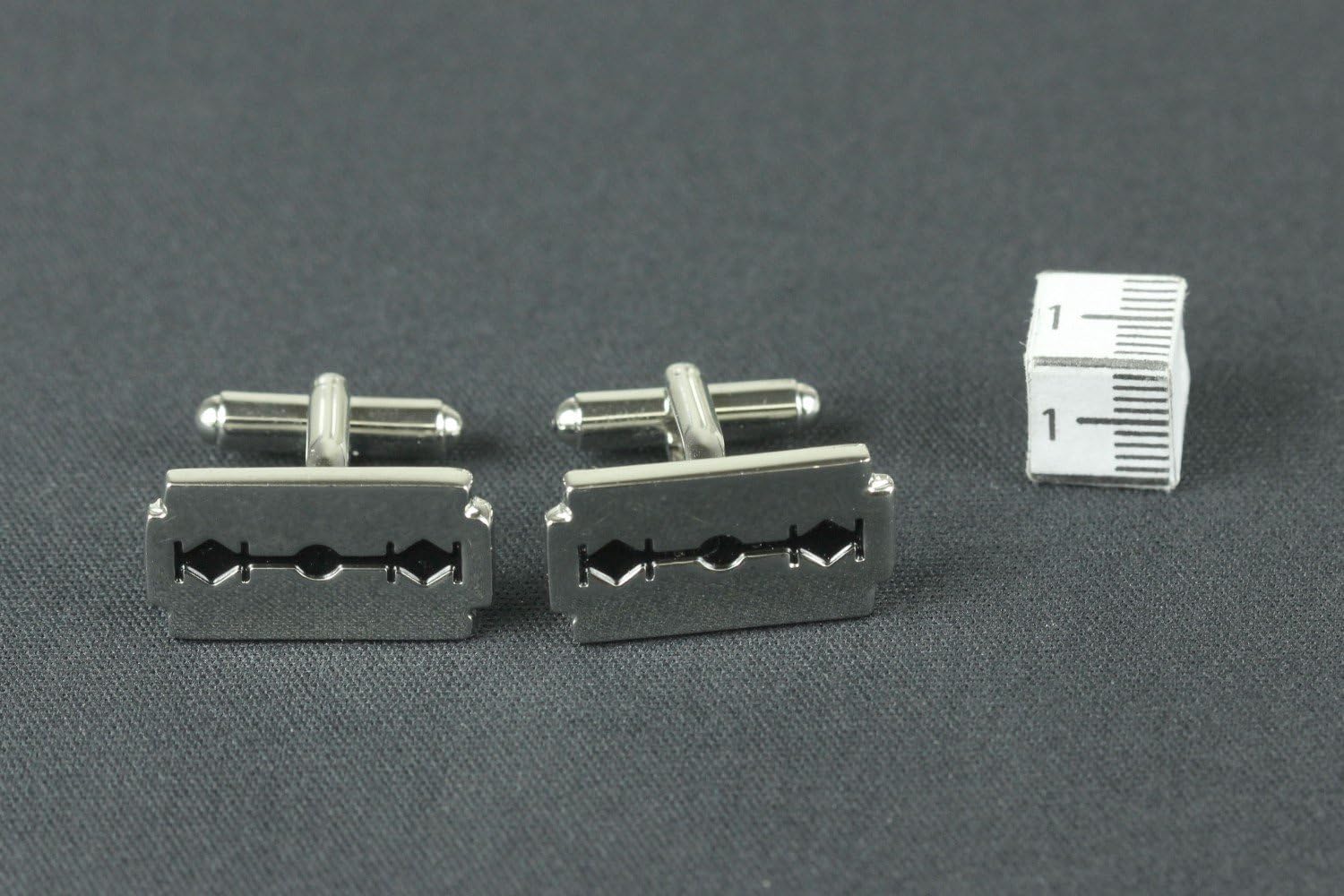 PRODUKTBESCHREIBUNGEN Rasierklingen Manschettenknöpfe in schöner Holzbox Material Knöpfe: Metall Grösse der Knöpfe: 25mm Lieferumfang: 1 Paar Manschettenknöpfe + Box