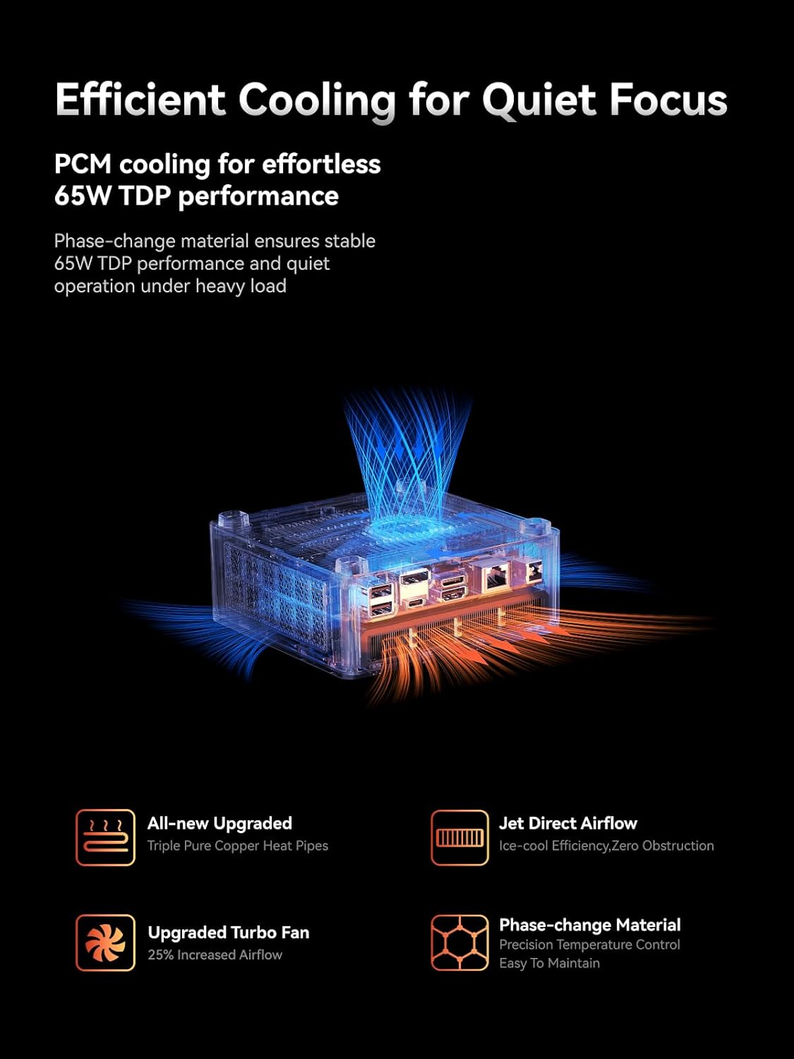 - 【Dreifache Display-Ausgabe】 Dieser kleine PC verfügt über HDMI2.1 TMDS x 1 (bis zu 4K@60Hz), USB4 x 1 (bis zu 8K@60Hz/4K@144Hz) und DP1.4 x 1 (bis zu 8K@60Hz/4K@144Hz) Display-Ausgänge, sodass Sie drei unabhängige Displays gleichzeitig