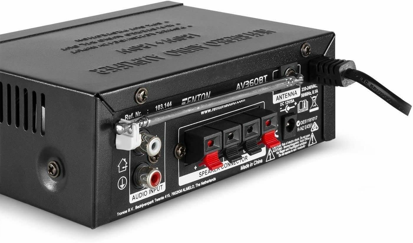 - FM-Radio: Der Skytronic AV360BT Stereo-Verstärker verfügt auch über ein FM-Radio, damit Sie Ihre Lieblingsradiosender hören können.