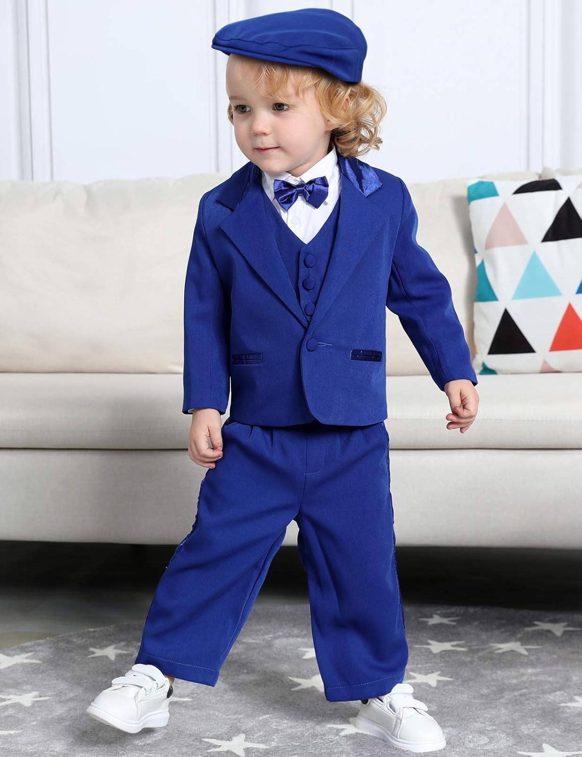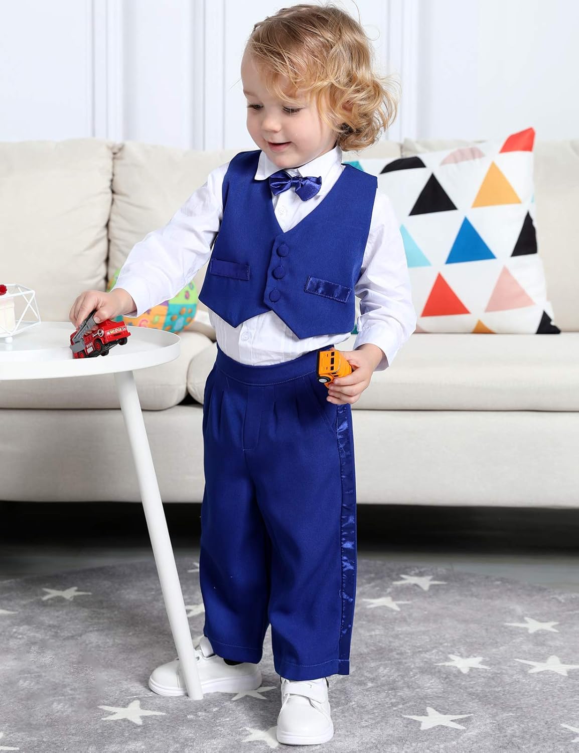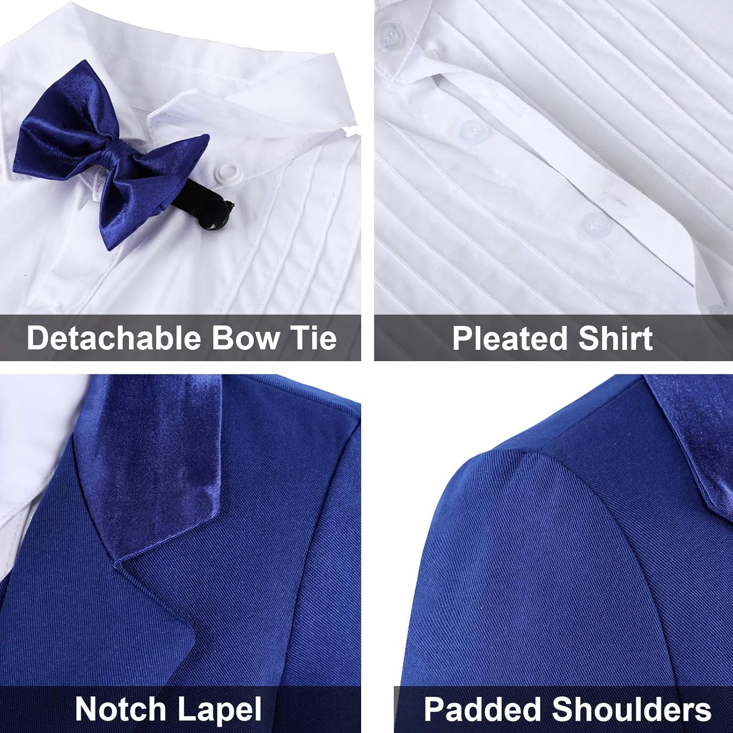 - SCHÖNES KLEINES OUTFIT: Die voll gefütterte Jacke hat 2 Seitentaschen und gepolsterte Schultern. Das plissierte Hemd mit abnehmbarer Fliege lässt Ihr Baby gut aussehen. Die Hose hat einen halben Gummizug in der Taille, der bequem und leicht zu tragen