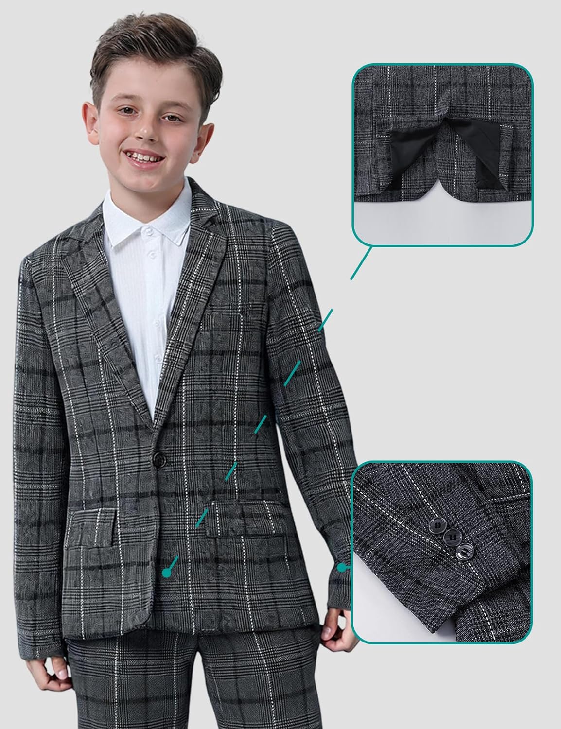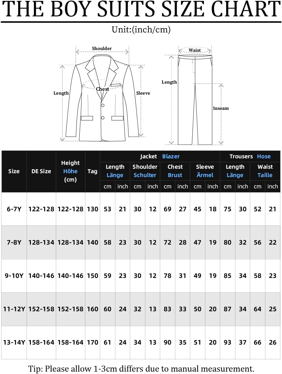 - Anlass: Der Jungenanzug ist ideal für Schulveranstaltungen, Familienfeiern oder Hochzeiten. Dieses Set passt mühelos zu knackigen Hemden für smarte Anlässe oder lässigen T-Shirts für Wochenendabenteuer