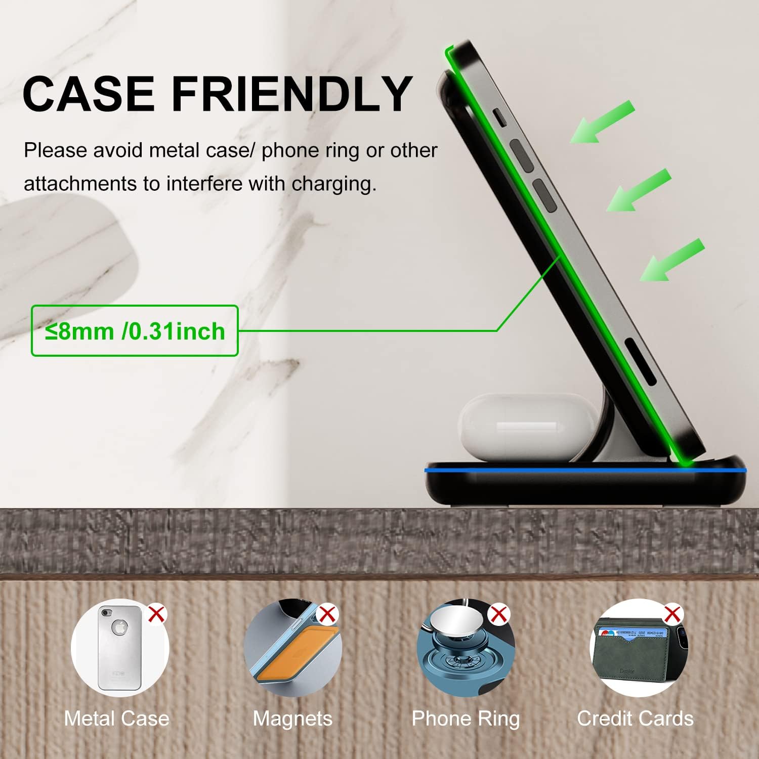 - đ ăMinimalistisches Designă 3 in 1 kabellose Ladestation geringes Gewicht bis 0,41 lbs, kompakte Grösse bis 5,3 Ă 3,9 Ă 5,3 Zoll, es ist nicht erforderlich, eine zusĂ€tzliche Ladeleitung im kabellosen LadegerĂ€t zu platzieren ââ einfach das