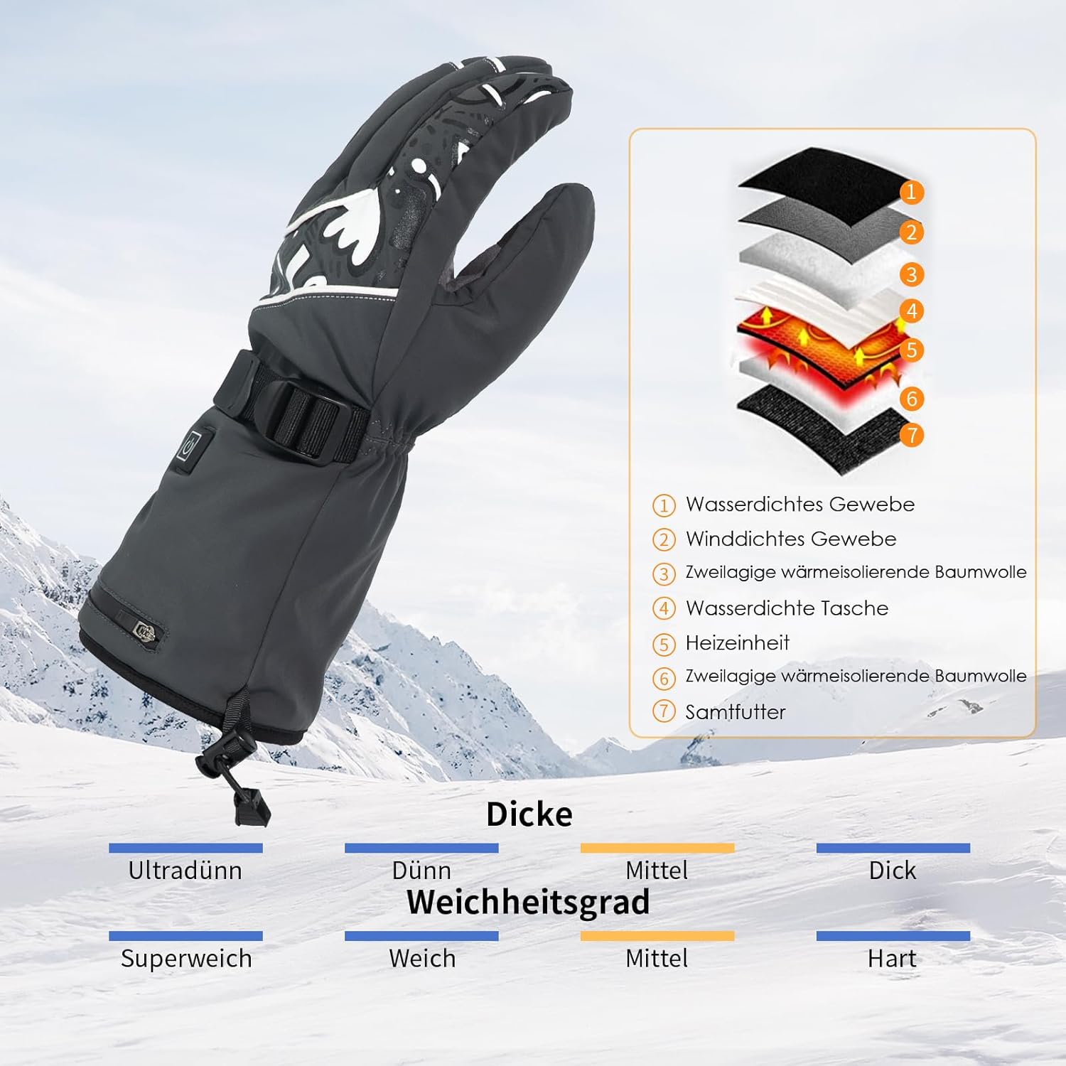 - [7-Schichten-Gewebe] Dank einer 7-schichtigen Gewebekonstruktion bieten diese elektrische handschuhe hervorragenden Komfort und Wärme für kalte Wintertage. Sie sind mit wasserdichten und winddichten Materialien vernäht, um optimalen Schutz vor Kälte