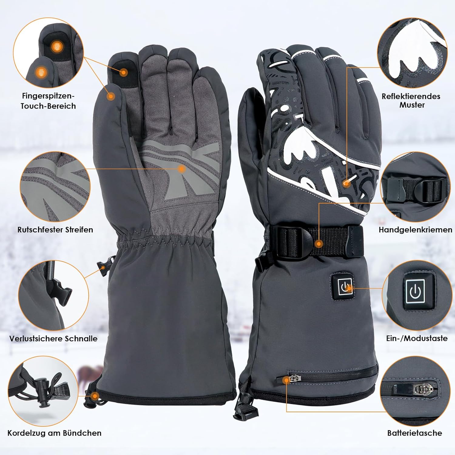 - [Empfindliche Touchscreen-Kompatibilität] Dank leitfähigem Material an Daumen und Zeigefinger ermöglichen diese beheizbare handschuhe mit akku die direkte Bedienung von Touchscreen-Geräten wie Smartphones, Tablets und Smartwatches. Ob beim Skifahren,