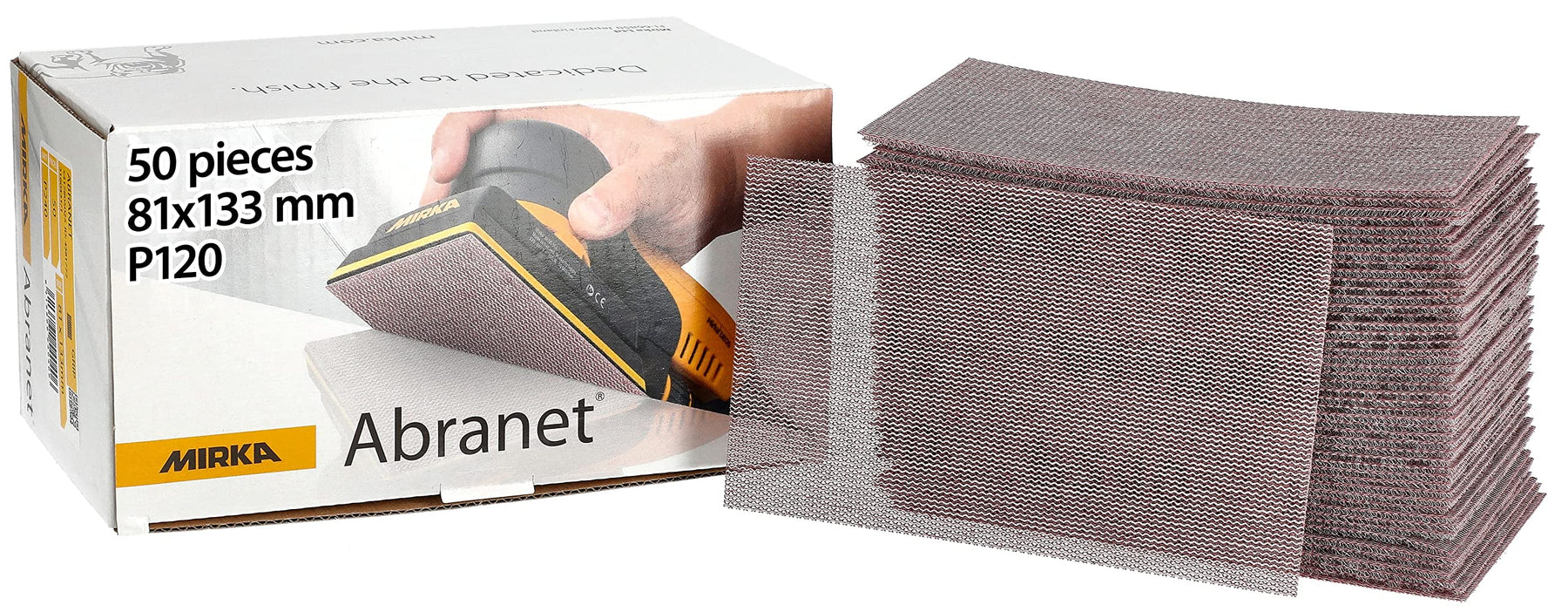 - Lieferumfang: Mirka Abranet Netzschleifstreifen 81x133mm, Körnung P120, 50 Stück pro Packung. Für passende Schwingschleifer, Handschleifblöcke und Handschliff geeignet