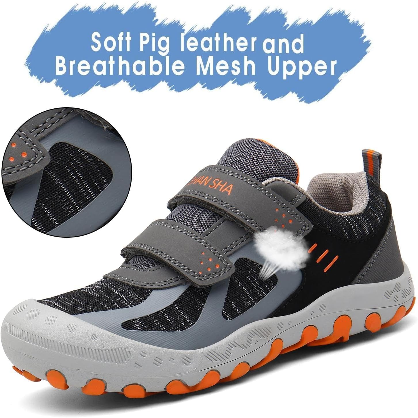 - Sohle: Kinderschuhe für den Innenbereich bestehen aus einer Gummisohle, die flexibel, rutschfest und abriebfest ist und zusätzlichen Halt beim Laufen, Springen und Spielen bietet. Dieser Wanderschuh ist ideal für Strasse, Camping, Wandern, Laufen,