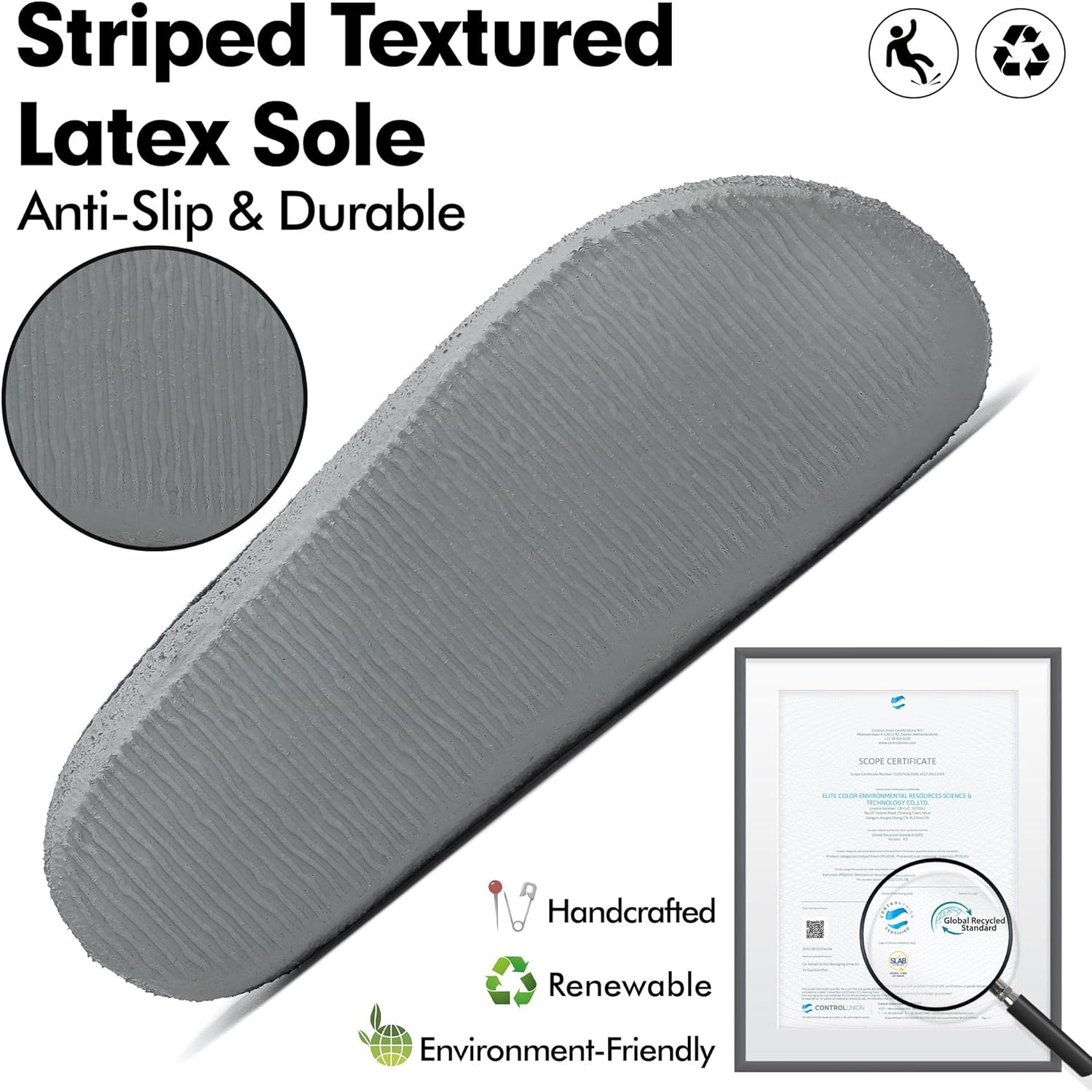 - Rutschfeste Latexsohle: Wir verwenden eine weiche, langlebige, umweltfreundliche, recycelbare Latex-Aussensohle mit einer gestreiften Textur, die zuverlässige Traktion und Griffigkeit auf einer Vielzahl von Oberflächen bietet, mit hervorragender