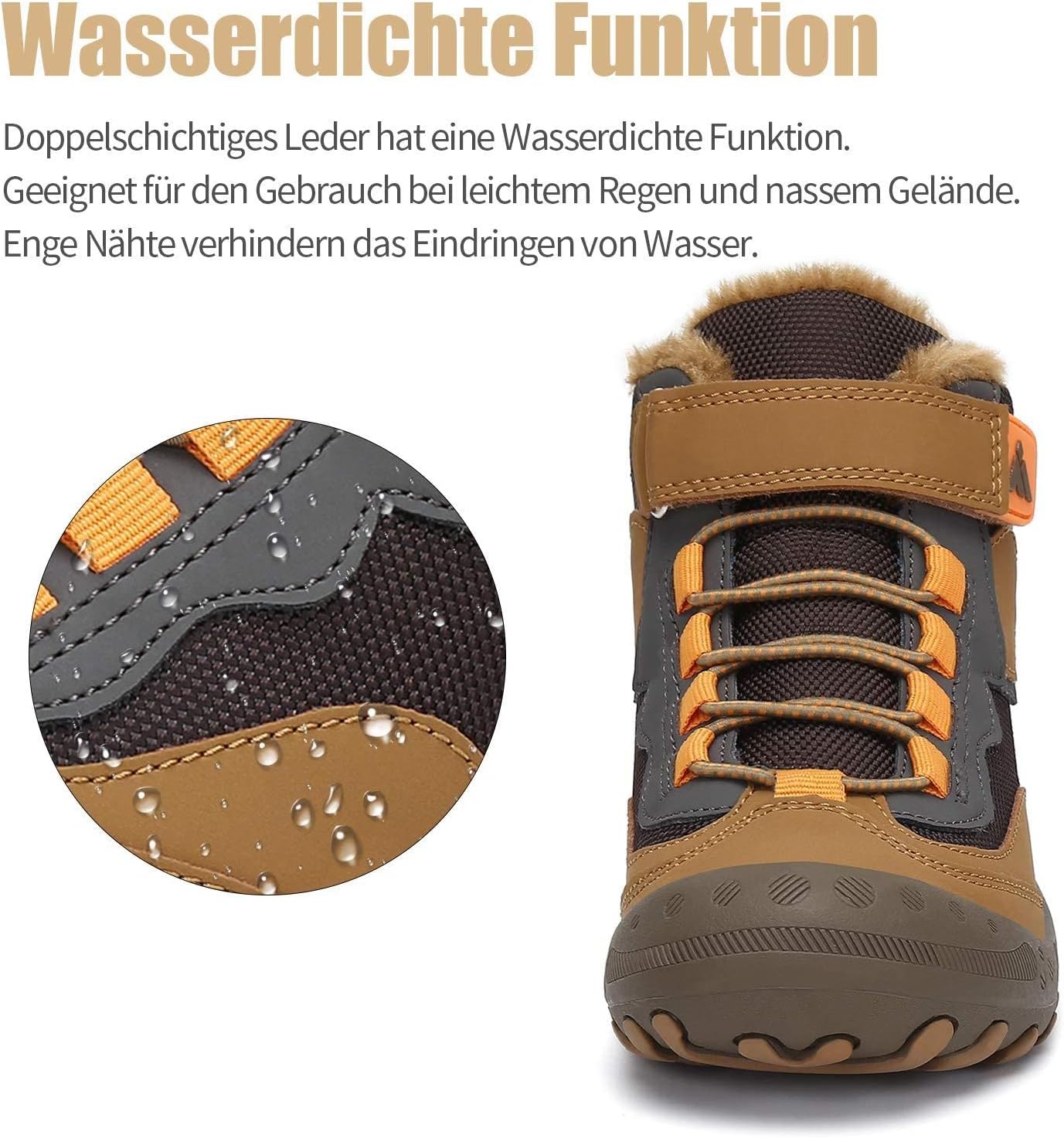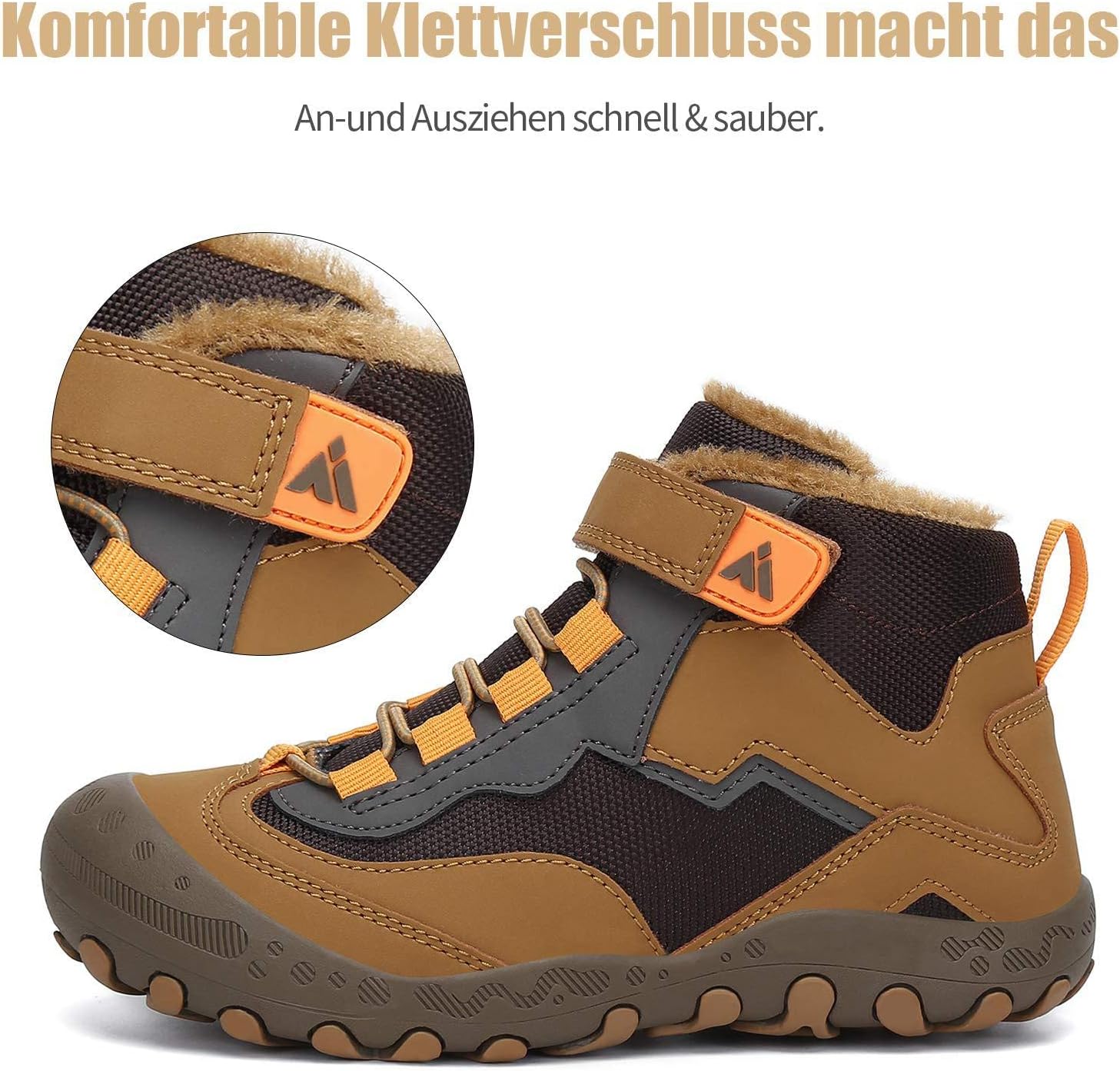 Mishansha Kinder Winterschuhe Gefüttert Winterstiefel für Jungen Mädchen Gr.24-38 25 EU Braun Schwar