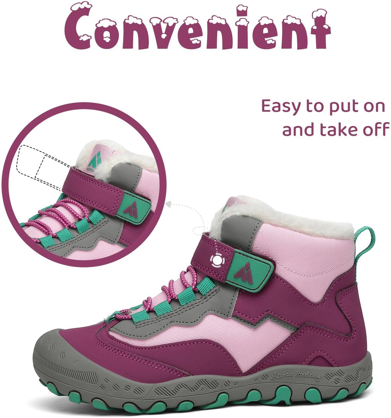 - Dies ist eine multifunktionale winterstiefel mädchen im Freien für Kinder, die sich sehr gut zum Wandern, Trekking, Bergsteigen, Spazierengehen, Schneeschuhlaufen, Joggen, Freizeit, Schule, Unterhaltungspartys usw. eignet. Sie kann auch als Geschenk an