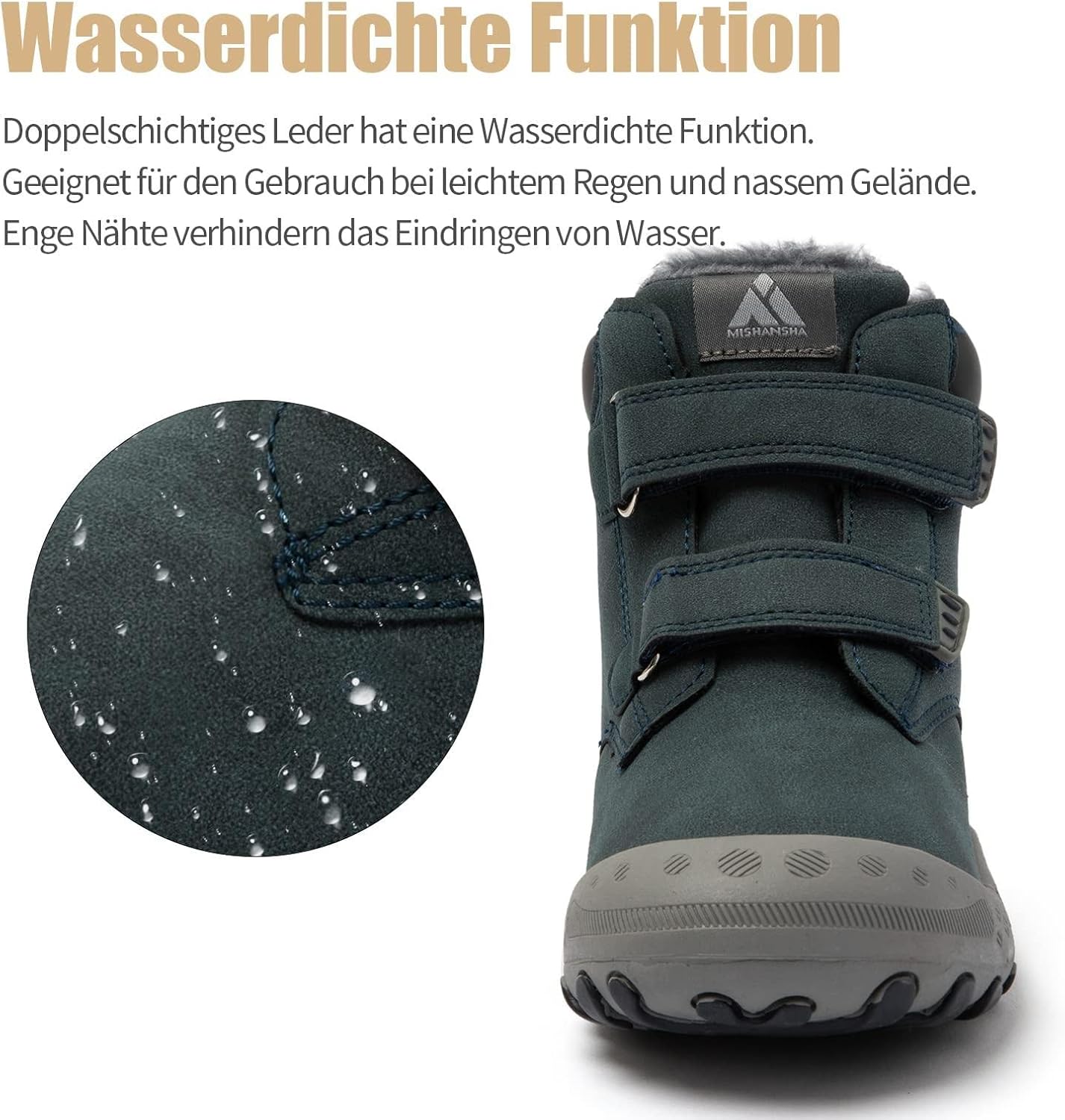• Mishansha Jungen Mädchen Winter Schneestiefel sind aus fein texturiertem Kunstleder gefertigt. Der ganze Stiefel ist mit Plüsch gefüttert, was Ihre Füsse bei Nässe oder Kälte lange Zeit warm und trocken hält.