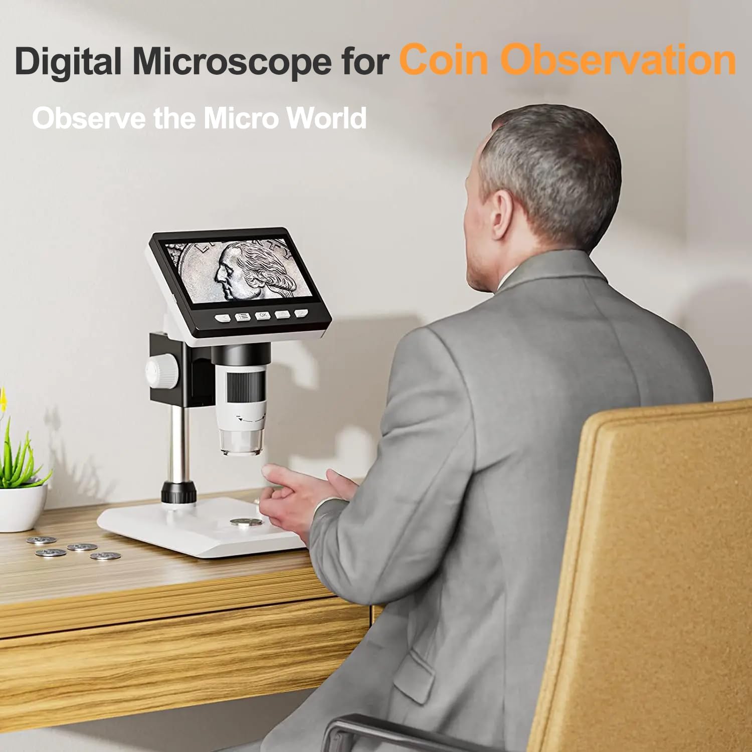 - 【Digitalmikroskop für Erwachsene, Kinder und Studenten】Handmikroskop ausgestattet mit einem 4,3-Zoll-1080P-HD-LCD-Bildschirm und 8 LED-Leuchten mit einstellbarer Helligkeit, die das zu beobachtende Objekt bei schwachem Licht oder in der Nacht