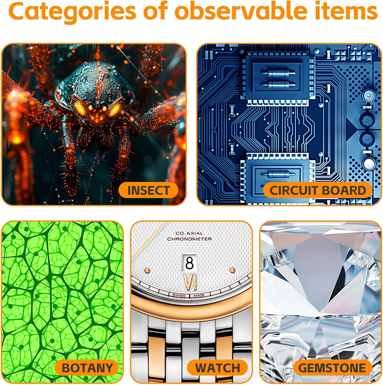 - 【Mehrszenenanwendung und Ideales Geschenk】Dieses Handmikroskop eignet sich sehr gut zur Beobachtung kleiner Insekten, Pflanzen, Münzen und Briefmarken. Es kann auch für wissenschaftliche Experimente, Kindererziehung, Leiterplatteninspektion,