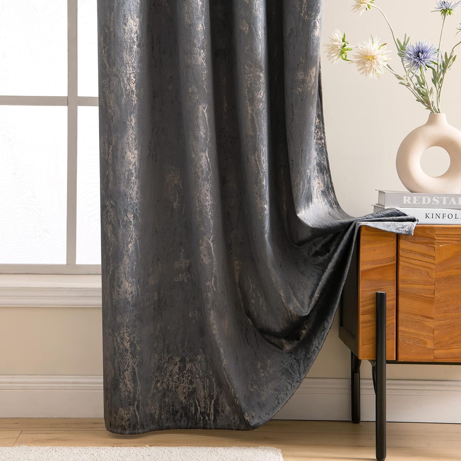 MIULEE 2er Set Gold Folie Druck Samtvorhänge Vorhang Funkeln Vorhänge mit Ösen Thermogardine Gardine