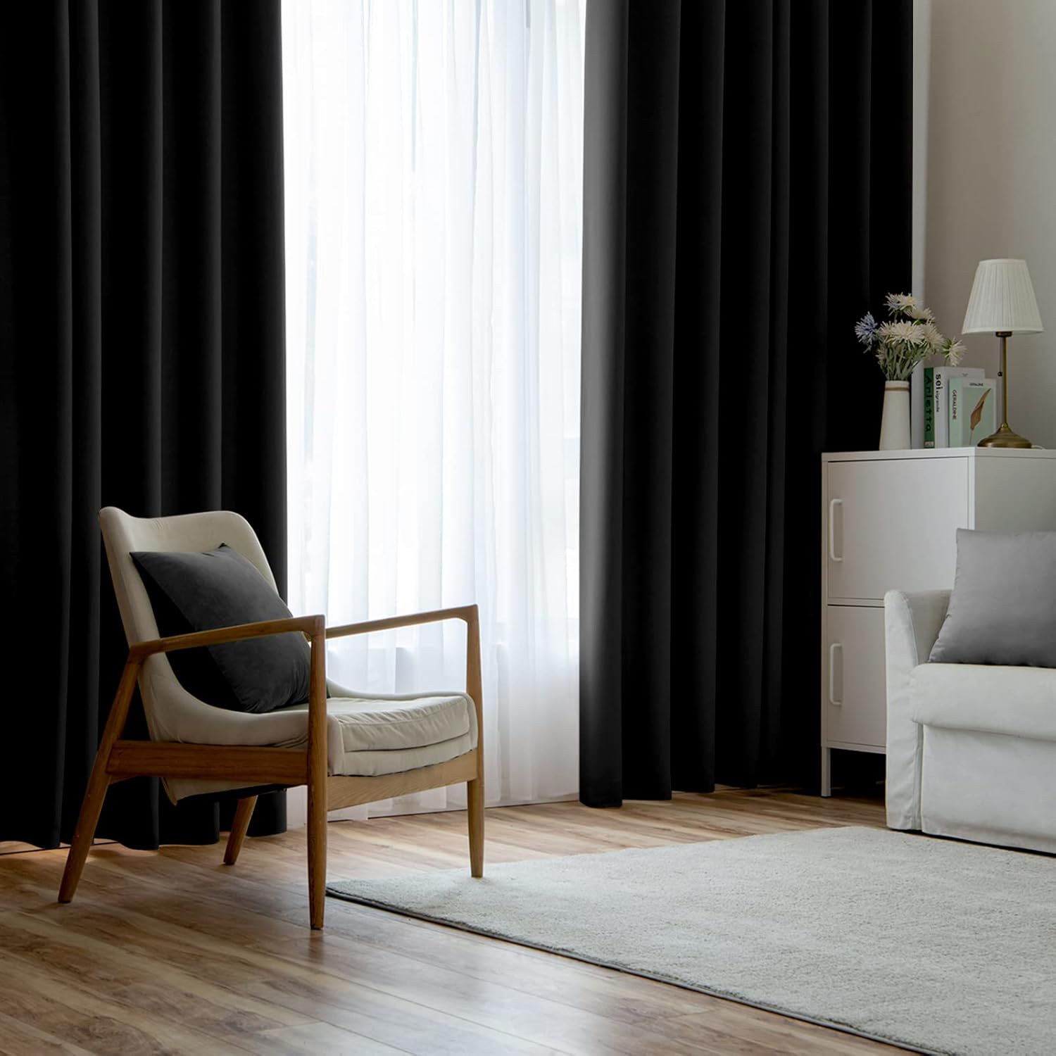 - Sie erhalten zwei Stücke von blickdichten Vorhängen in Schwarz, die jeweils 245 cm hoch und 140 cm breit sind. Um einen schönen Plissee-Effekt beim Schliessen der Vorhänge zu erzielen, die Gesamtbreite der Vorhänge sollte mehr als zweimal so breit