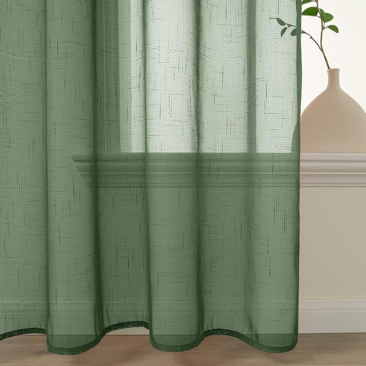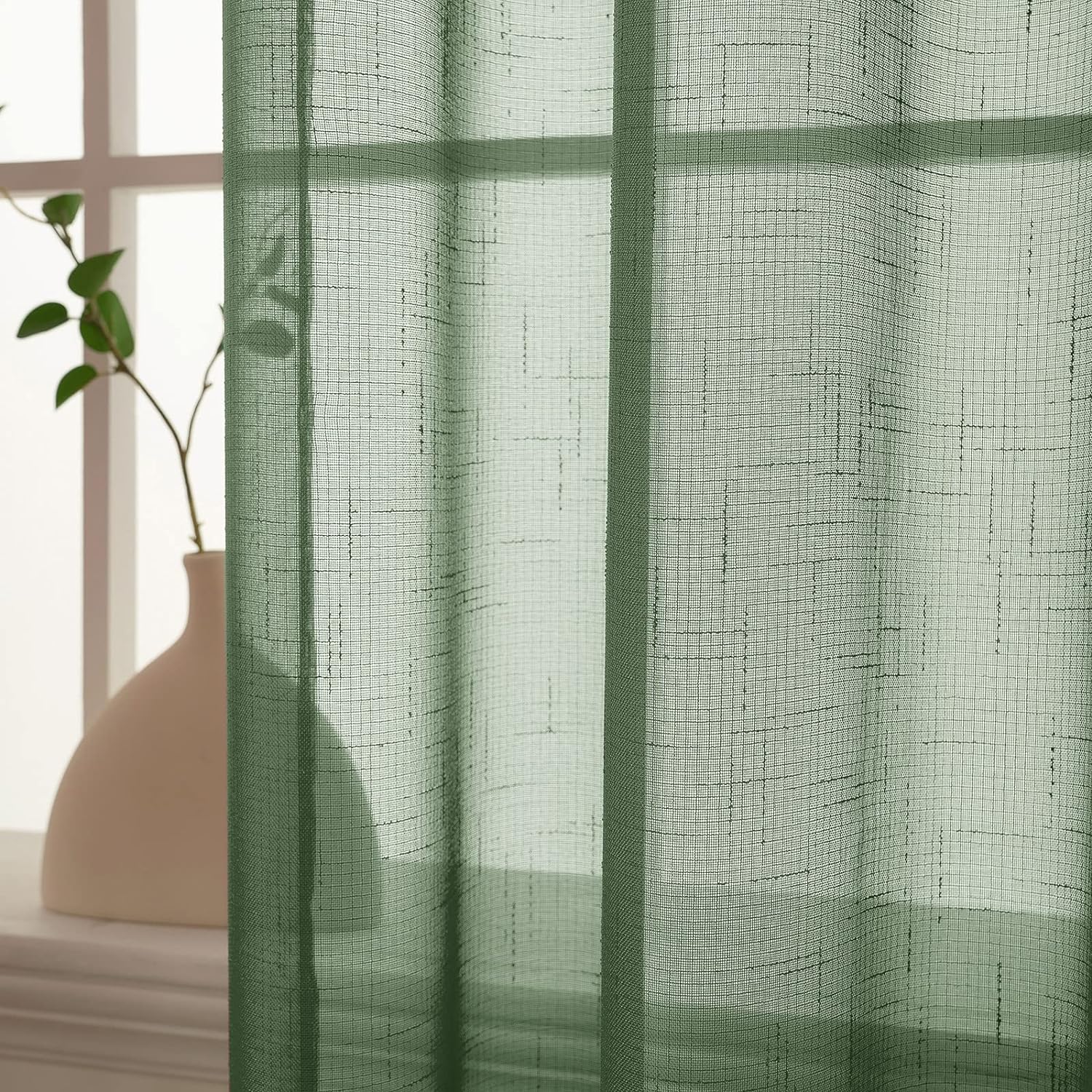 MIULEE 2er Set Voile Vorhang Sheer Leinenvorhang mit Ösen Transparente Leinen Optik Gardine Ösenscha