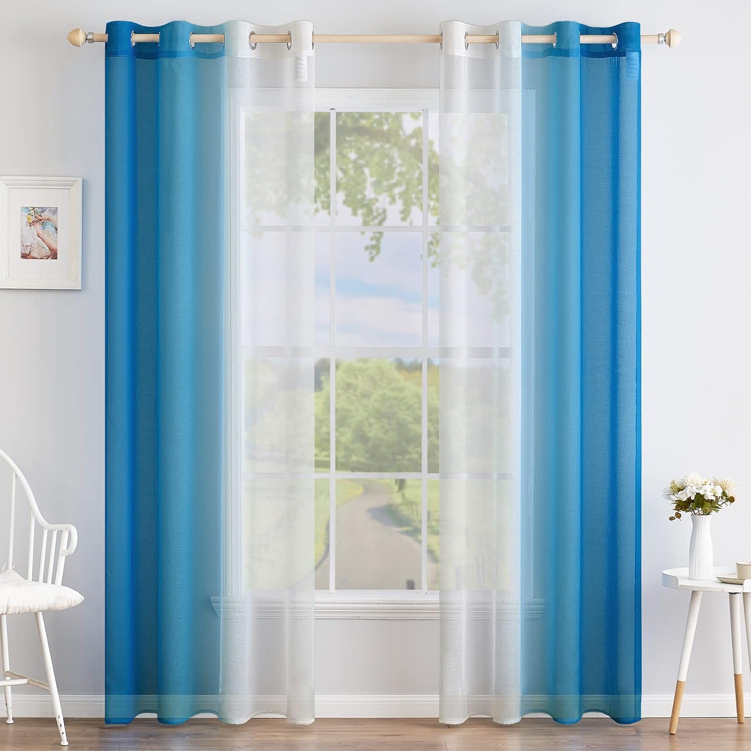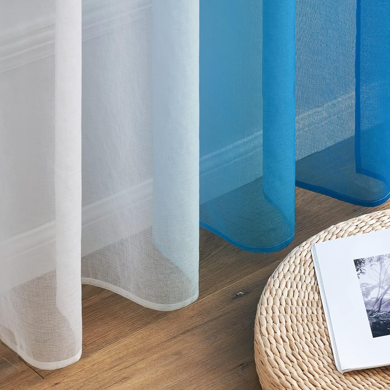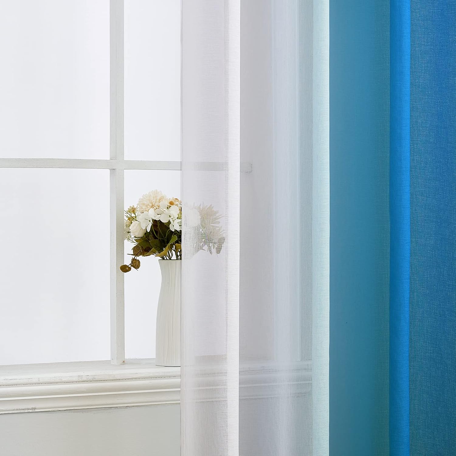 MIULEE 2er Set Voile Vorhang Zweifarbiger Vorhang mit Ösen Transparente Gardine Ösenschal Fenstersch