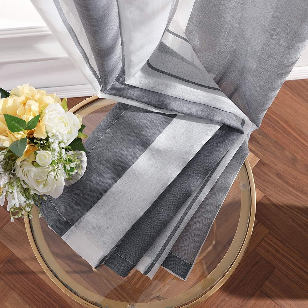 MIULEE Gardinen Gestreift Transparent mit Ösen, Voile Vorhänge Wohnzimmer Modern 2er Set, Vorhang Sc