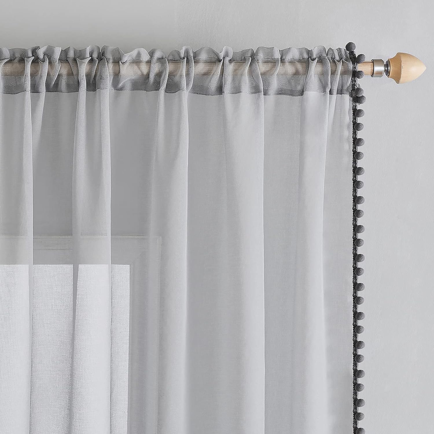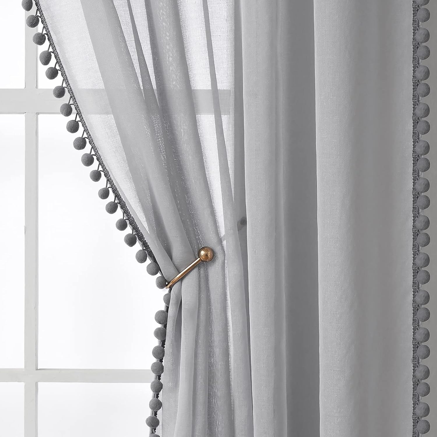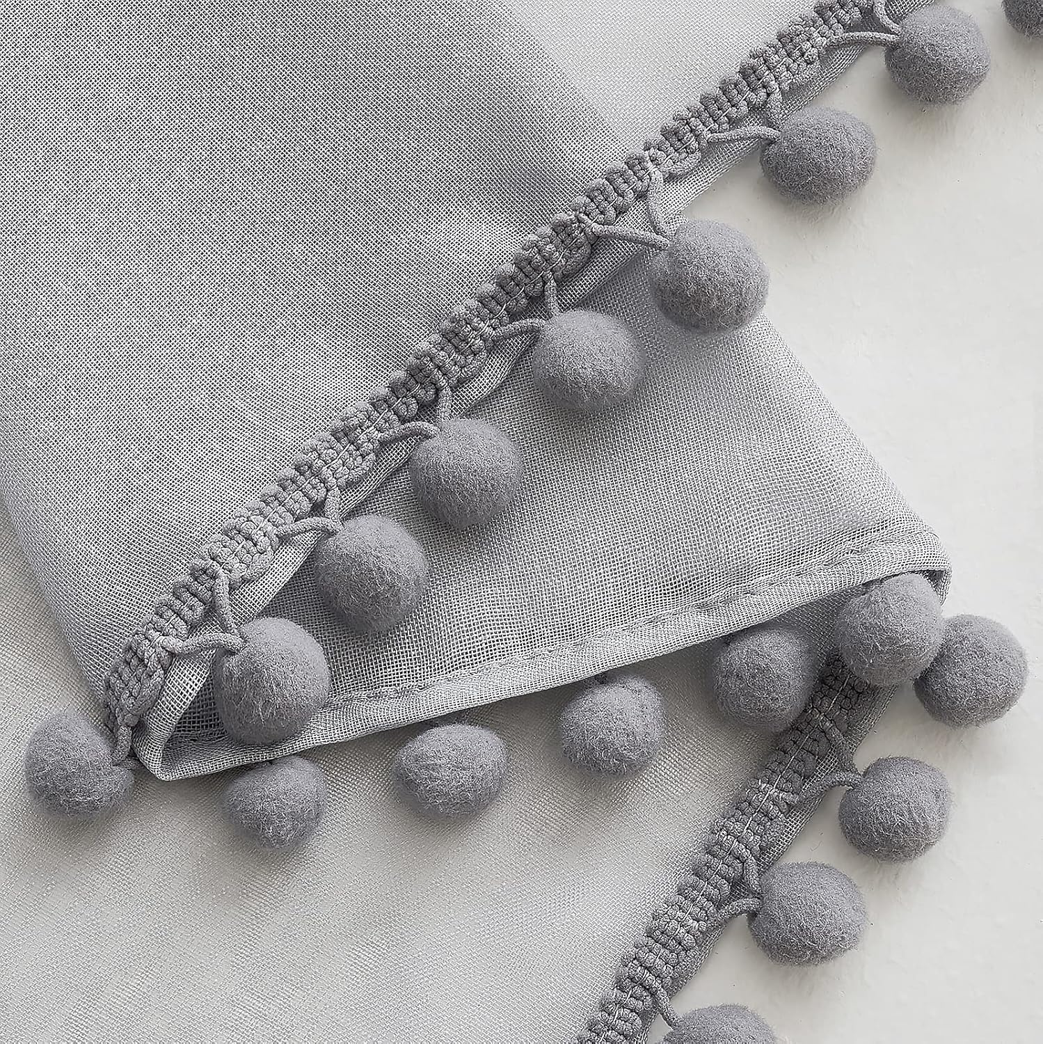MIULEE Gardinen mit Pompons-Hübsche Grau Transparent Gardinen für Kinderzimmer Mädchen, 2 Stücke Vor