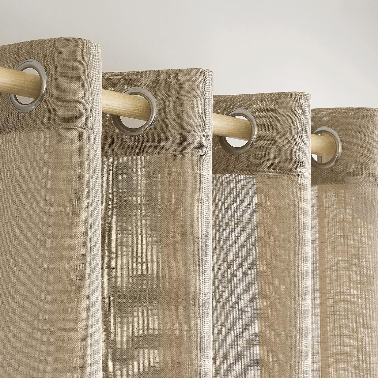MIULEE Gardinen Vorhänge mit ösen Voile Vorhang Modern Leinenoptik Halbtransparent für Wohnzimmer Kü