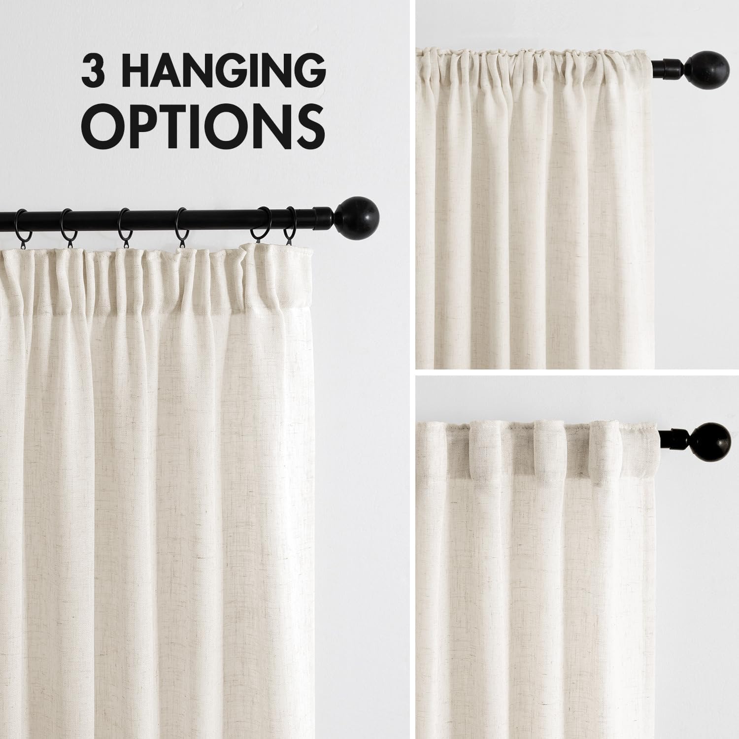- Drei Aufhängungsmöglichkeiten:Jedes Vorhangpaneel hat ein 2-in-1-Design - Ringe auf der Rückseite und Stangentasche. Passt auf die meisten Standardstangen. Die Vorhänge können auch mit Clipringen aufgehängt werden (Vorhangklammern sind nicht im