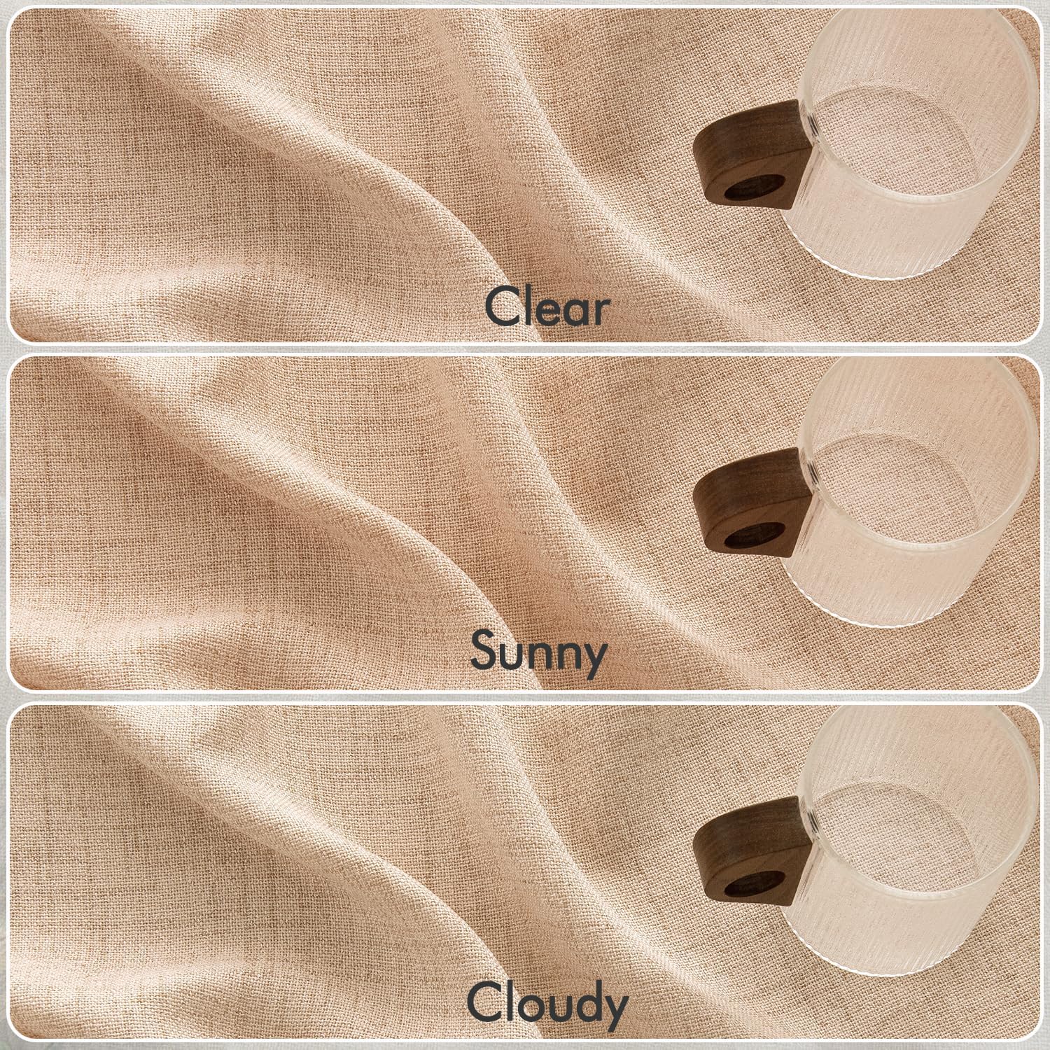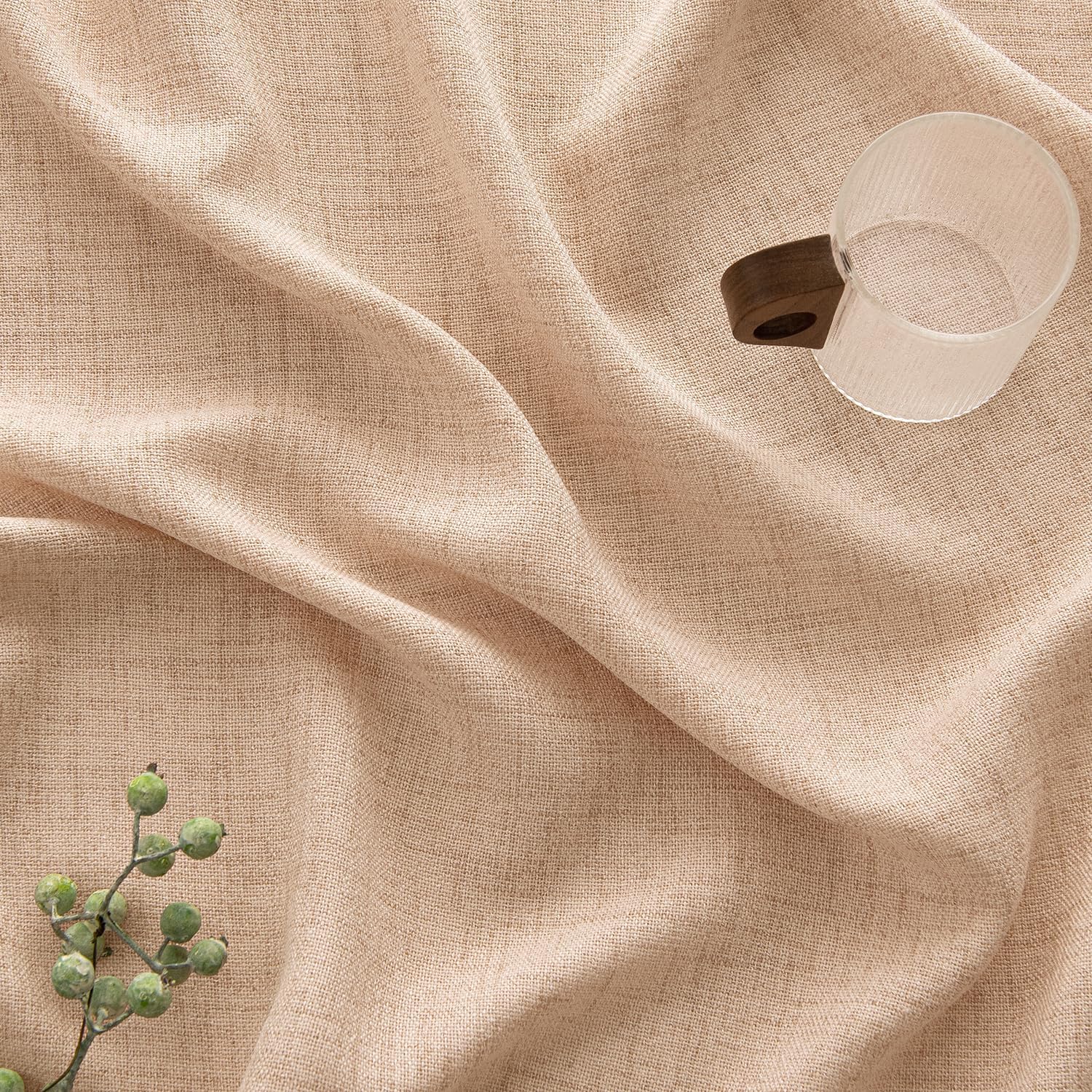 - Material: Die Vorhänge bestehen aus leinenartigem Material und sind sorgfältig verarbeitet. Der Stoff ist weich und sanft auf der Haut, mit einer mittleren Dicke für eine perfekte Aufhängung.