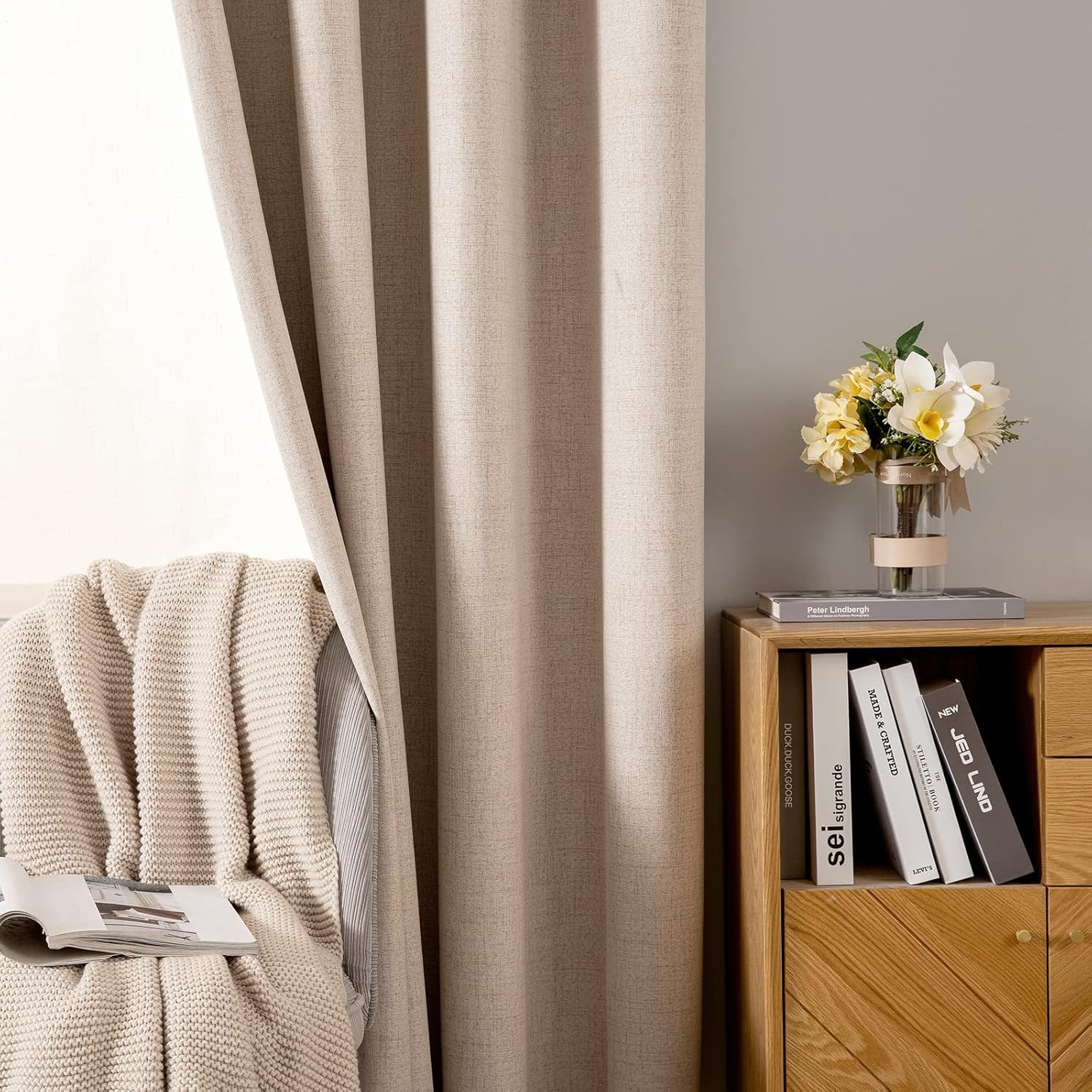 - GRÖSSE & MATERIAL: Das Set enthält 2 Paneele Verdunkelungsvorhänge (140 cm breit und 145 cm lang). Jedes Paneel hat 8 Ösen, der Innendurchmesser des Lochs beträgt 4 cm. Es ist einfach zu hängen. Die Vorhänge sind aus hochwertigem Leinenimitat