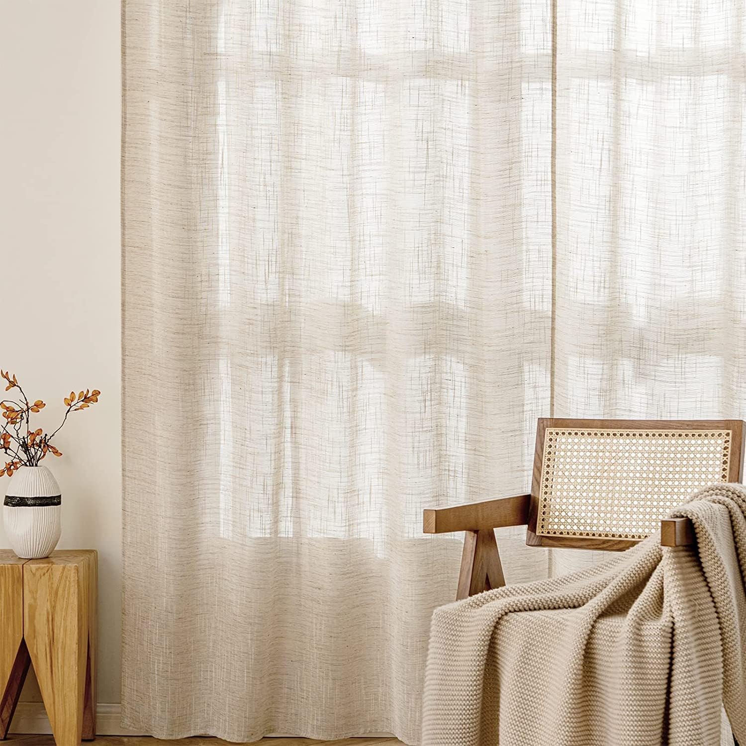 • Hochwertiger Stoff: Unsere Vorhänge sind aus 100% Polyesterfasern hergestellt und haben das Aussehen von Leinen. Im Vergleich zu anderen Vorhängen sind diese mit dem Leinen-Look knitterbeständiger, weicher, bequemer und langlebiger.