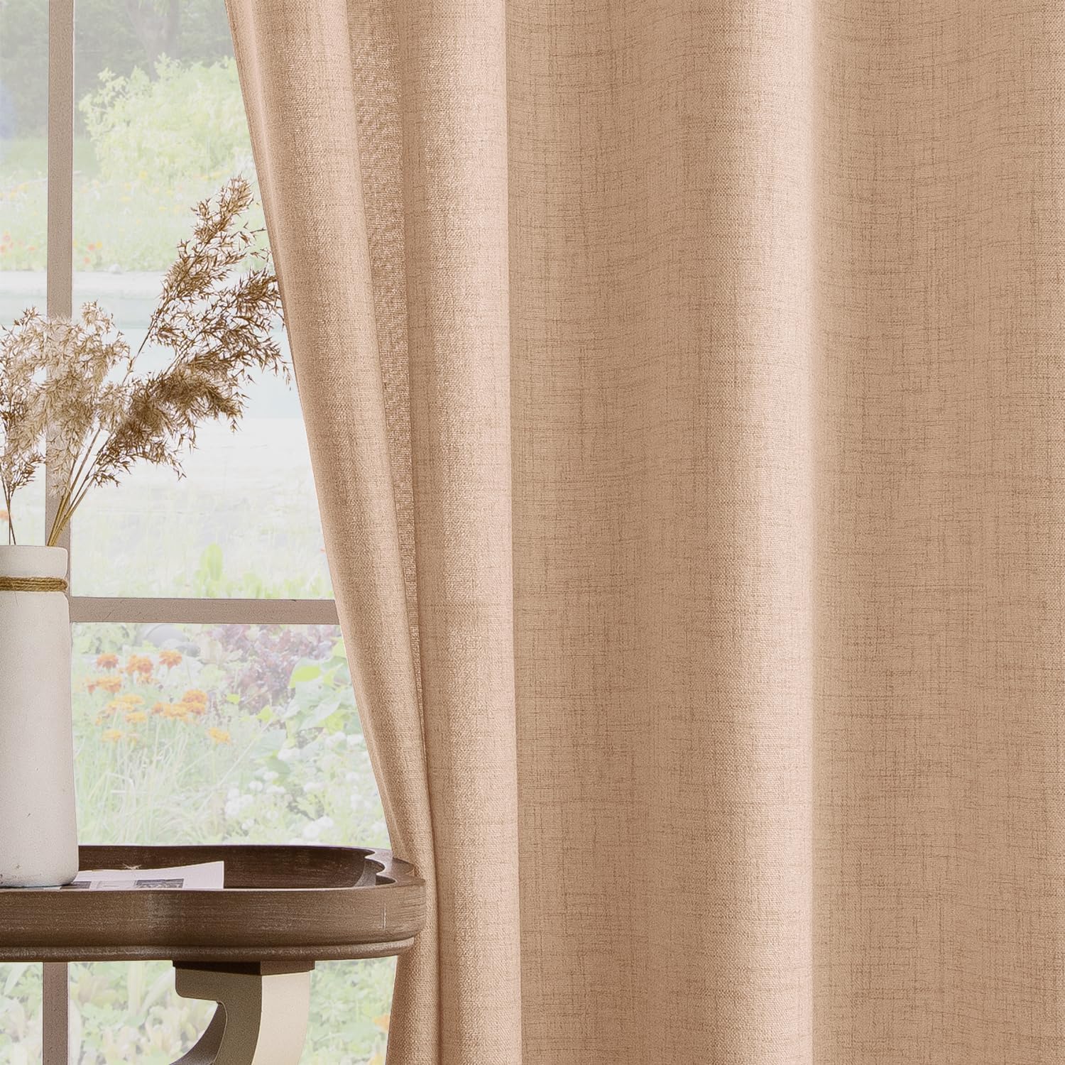 - Material: Die Vorhänge bestehen aus leinenartigem Material und sind sorgfältig verarbeitet. Der Stoff ist weich und sanft auf der Haut, mit einer mittleren Dicke für eine perfekte Aufhängung.