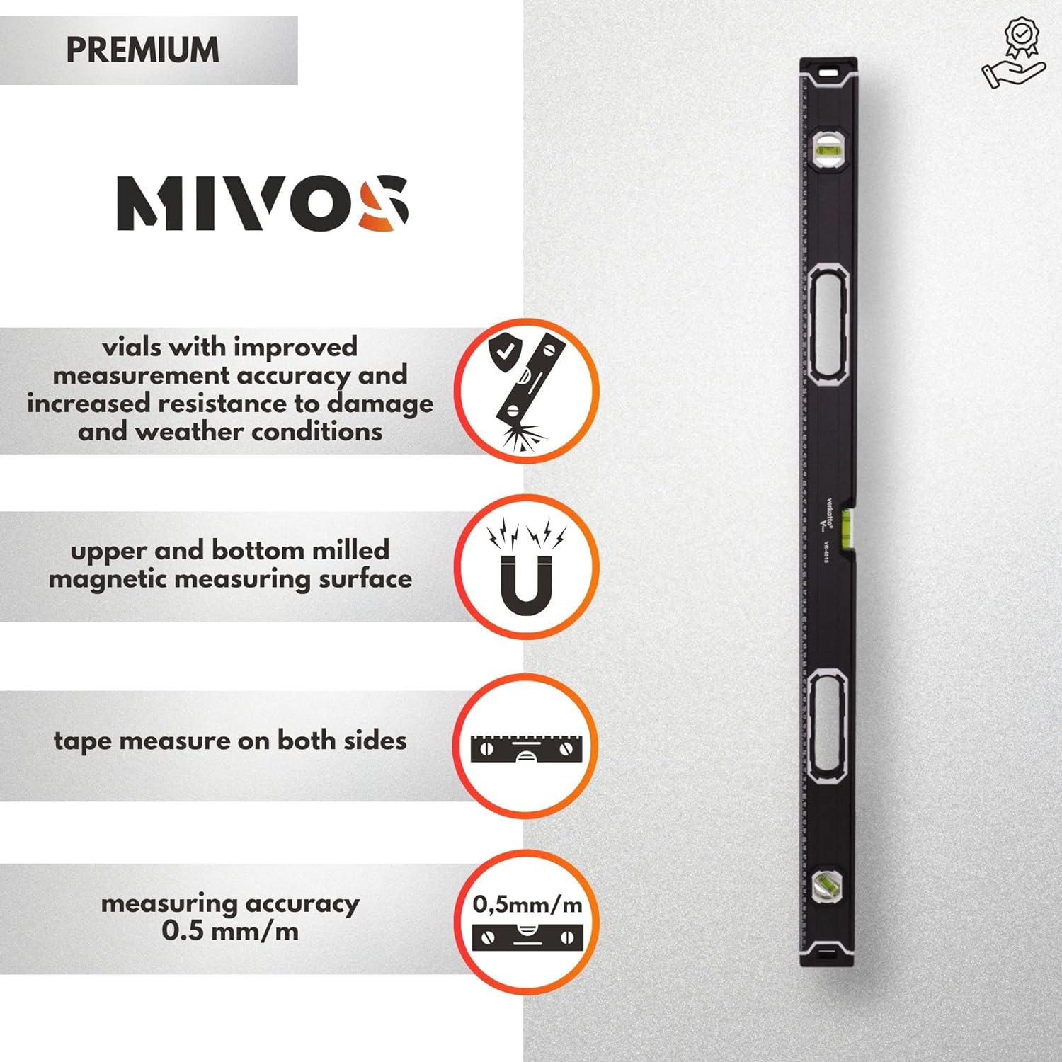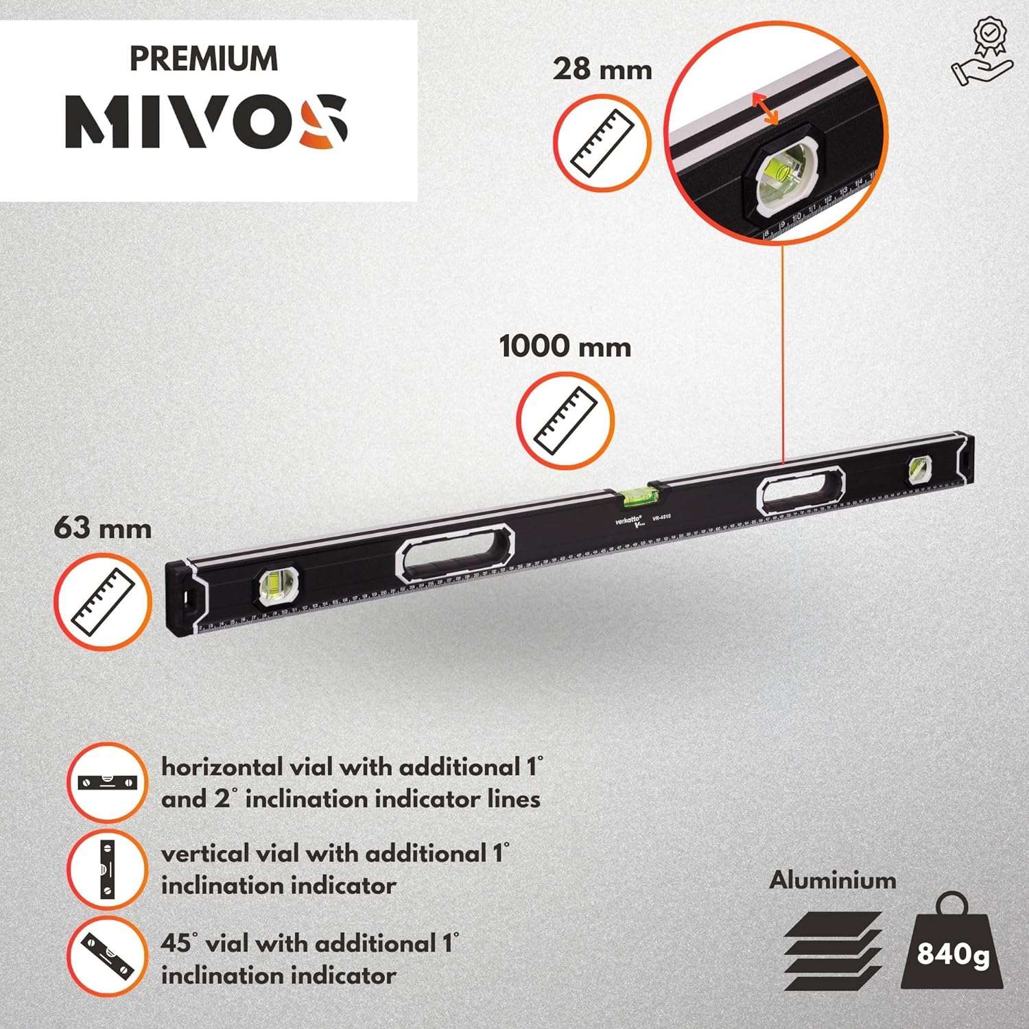 - HOHE MESSGENAUIGKEIT: Die magnetische Aluminium-Wasserwaage ist mit präzisen Libellen ausgestattet, welche eine erhöhte Messgenauigkeit von 0,5 mm/m bieten und gegen Beschädigungen sowie negative Einflüsse von Wetterbedingungen resistent sind.