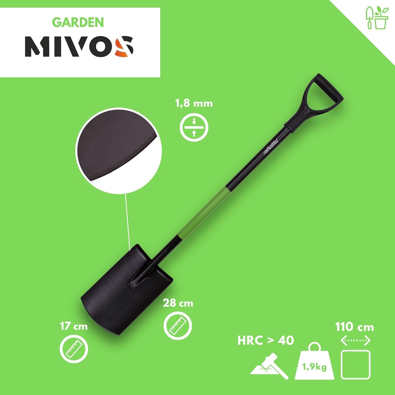 Mivos Runder Gärtnerspaten aus Gehärtetem Stahl - 110 cm - Gartenspaten mit Breite Trittkante - Grab