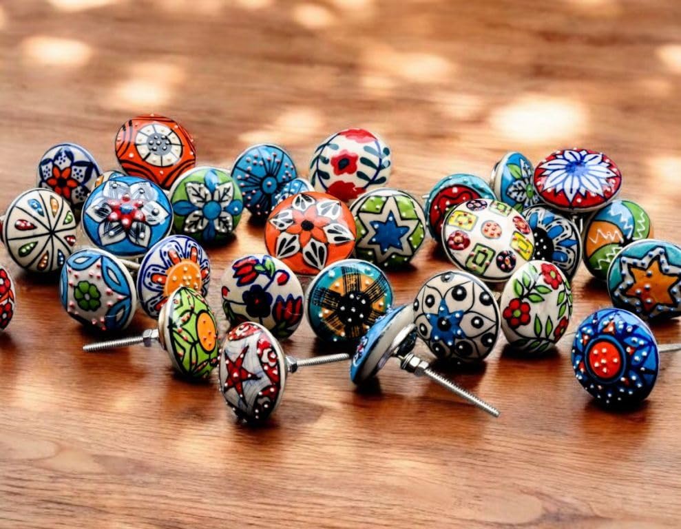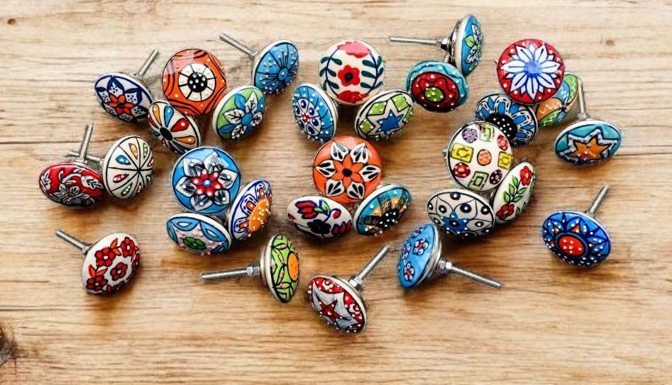 - 20 gemischte Retro Blumen Keramik knöpfe Tür Schrank Schubladengriffe