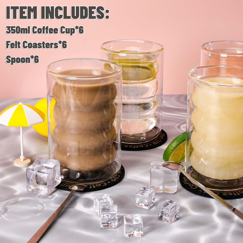 - ☕【Weit Verbreitet】 Die KaffeegläSer misst 12 x 8 cm und hat ein Fassungsvermögen von 350 ml, was sowohl exquisit als auch praktisch ist. Daher ist es in Privathäusern, Cafés, Bars, Clubs, Hotels und Restaurants sehr beliebt. Dieses Bubble