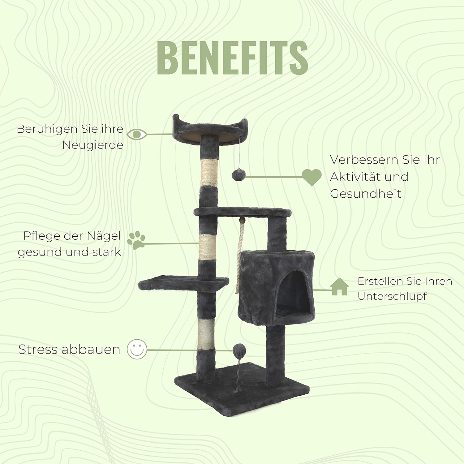 - 🐈 SPIELEN: Der Kratzbaum wird Ihrer Katze helfen, ihre Natur nicht an unserem Sofa oder anderen Gegenständen auszulassen und diese dabei zu beschädigen