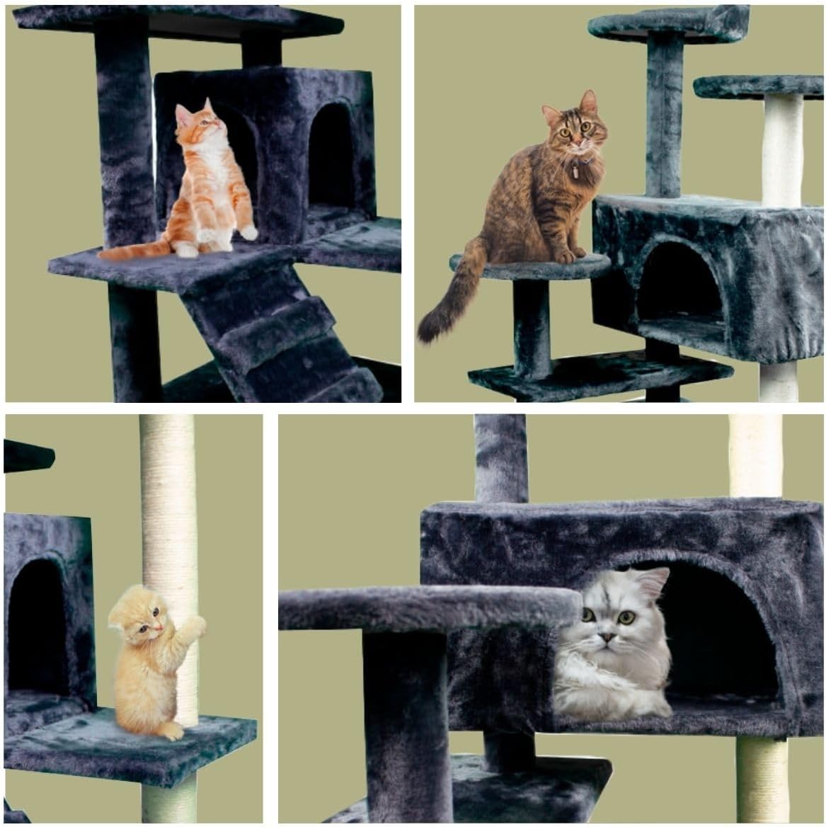 - 🐈AUSRUHEN: Der Katzenkratzbaum enthält zwei Unterstände zum Ausruhen. Diese Tiere lieben es, sich im Haus zu verstecken. Daher ist dieser Bereich für sie ideal zum Ausruhen. Auf diese Weise werden wir unsere Katze ausfindig machen können, und