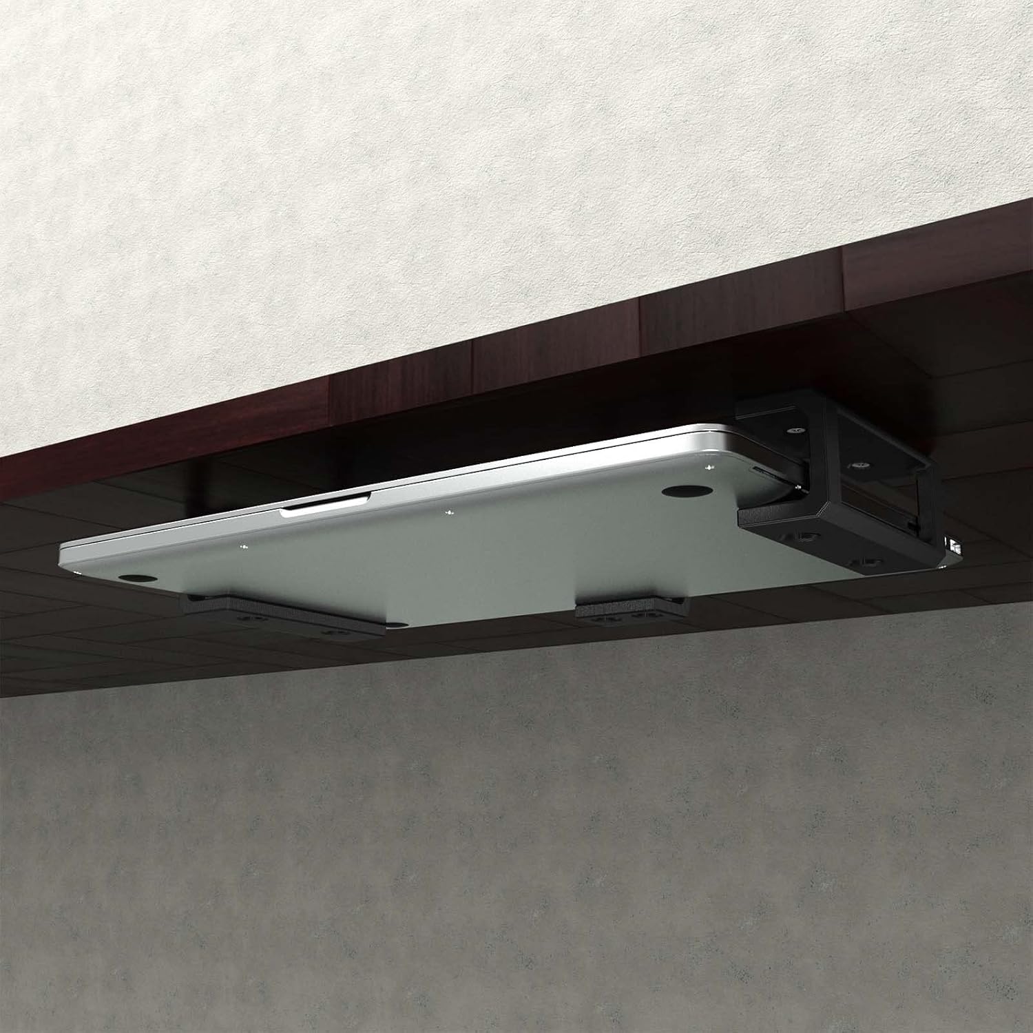 - Lieferumfang: 1x Untertisch Halterungs Set Schwarz für Laptop / MacBook 0-35mm / 6x Holzschrauben