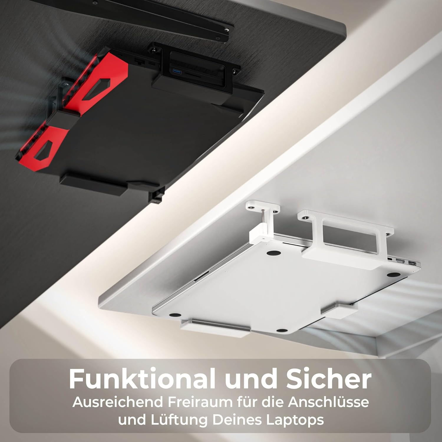 - Praktische Untertisch Halterung mit Rausfallschutz passend für alle gängigen Notebooks und MacBooks mit einer Höhe von 0 - 35 mm | Made in Germany