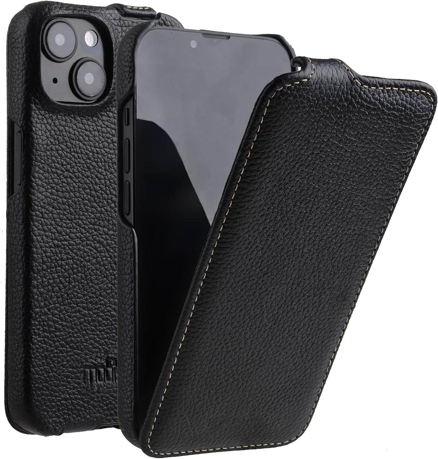 - Aufklappbare Hülle für Apple iPhone 14 (6,1 Zoll) mit beschichtetem Leder auf der Aussenseite