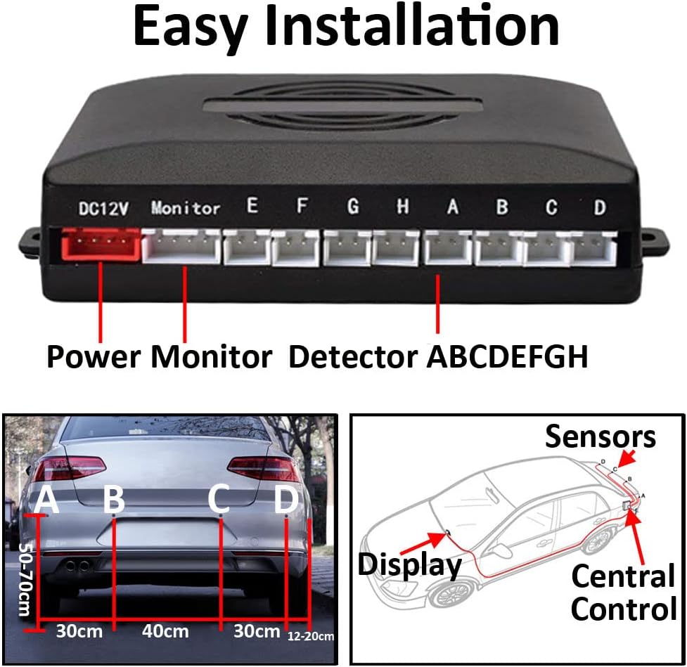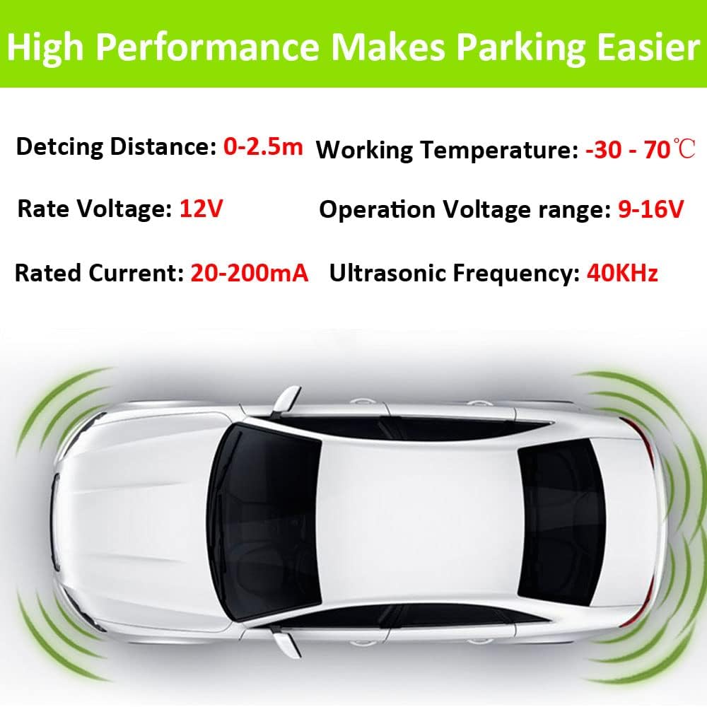 - 【 Parking Radar Performance 】 Doppelte CPU für schnelle Reaktion. Selbstkontrolle der Sonde, um Kollisionen aufgrund von Sondenschäden zu vermeiden. Arbeitsspannung: 12VDC, Arbeitsstrom: 20-180mA, Erkennungsabstand: 30CM-250CM, Alarmlautstärke: