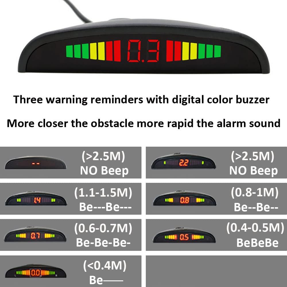 - 【 Bequem und Einfach 】 wenn das Auto startet, startet das Radarsystem automatisch die Erkennung. Bei Annäherung an ein Hindernis und häufiger, wenn die Distanz näher rückt, ertönt eine Summerwarnung. Gleichzeitig zeigt das Display auch die