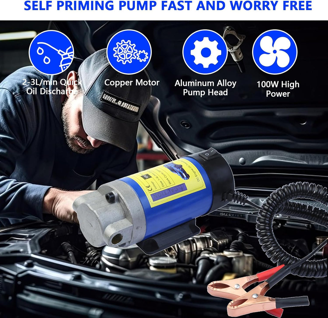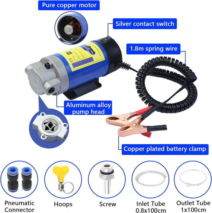 - 【Kein langsamer und unordentlicher Öltransfer mehr】 Das 12V Ölabsaugpumpe Elektrisch Kit kann Diesel oder Leichtöle mit bis zu 2-3 l/min transferieren und enthält alles, was Sie brauchen: Einlass- und Auslassschläuche, pneumatische Anschlüsse