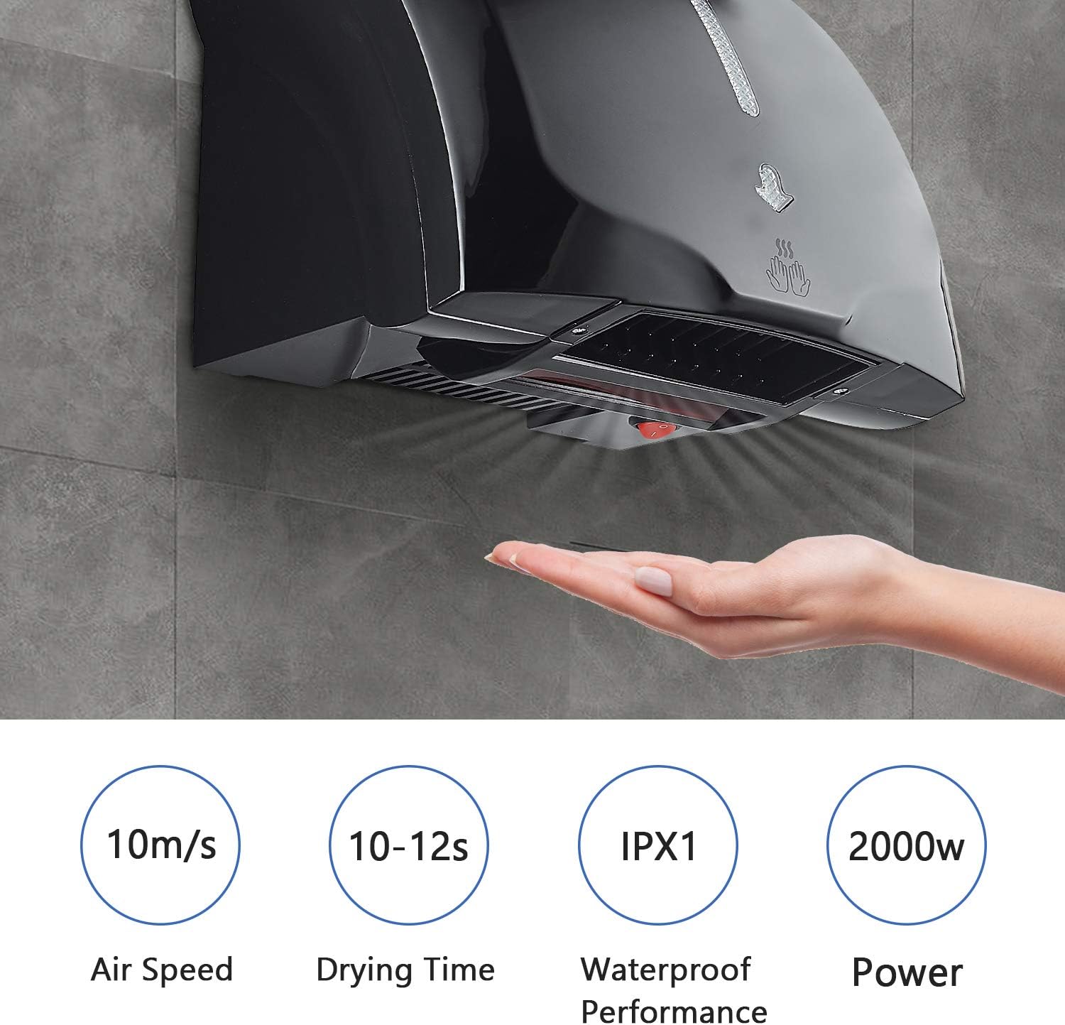 • Schnelles Trocknen: Trocknen Sie Ihre Hände in 10-12s, um lange Schlangen zu vermeiden. Sehr gut geeignet für öffentliche Orte wie Bars, KTV, Einkaufszentren, Restaurants usw.