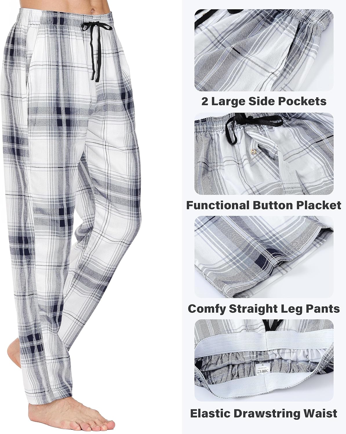 - Warme hautfreundliche Baumwolle: Diese karierten Pyjamahosen für Herren bestehen aus Baumwolle mit Mikrofleece innen, sind weich und superbequem zu tragen.